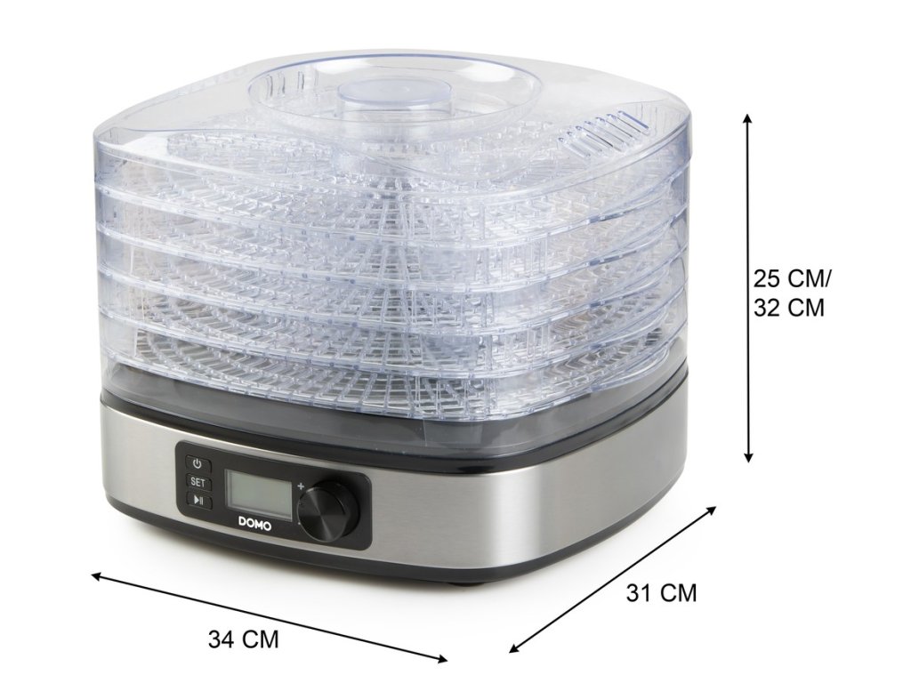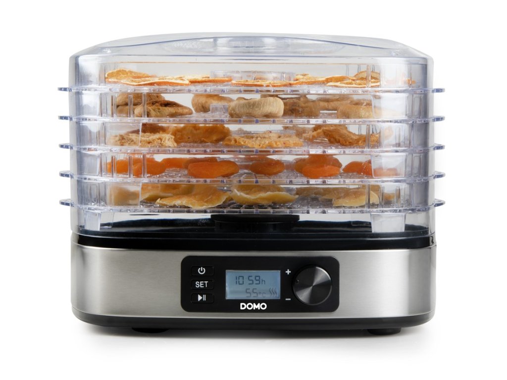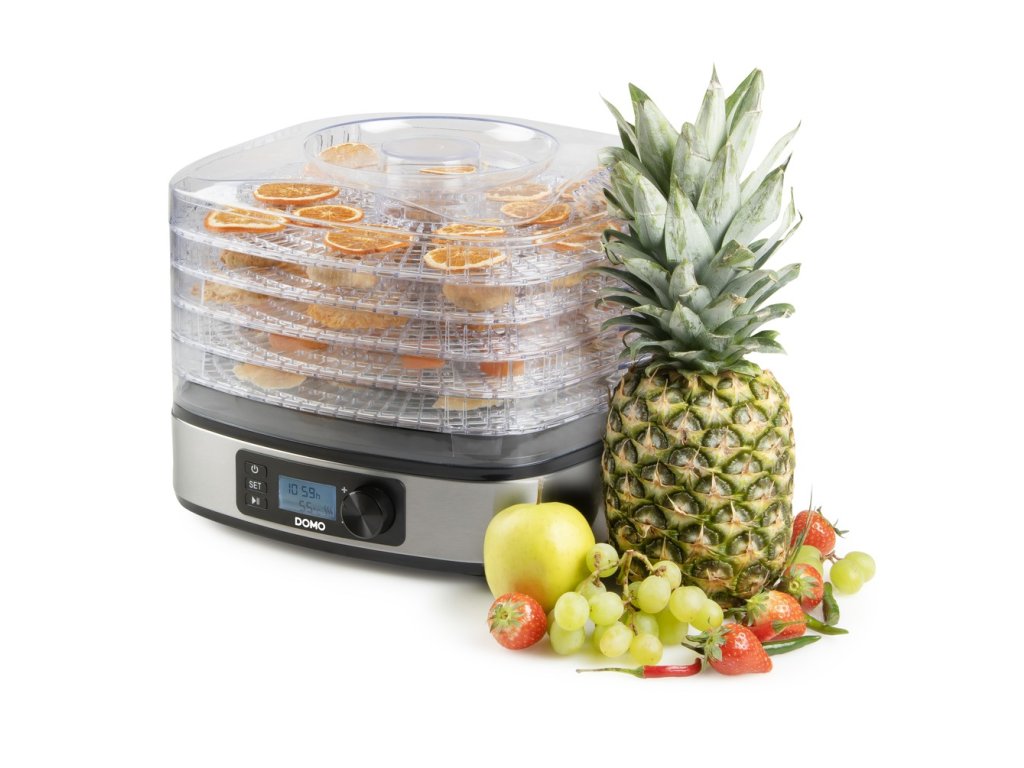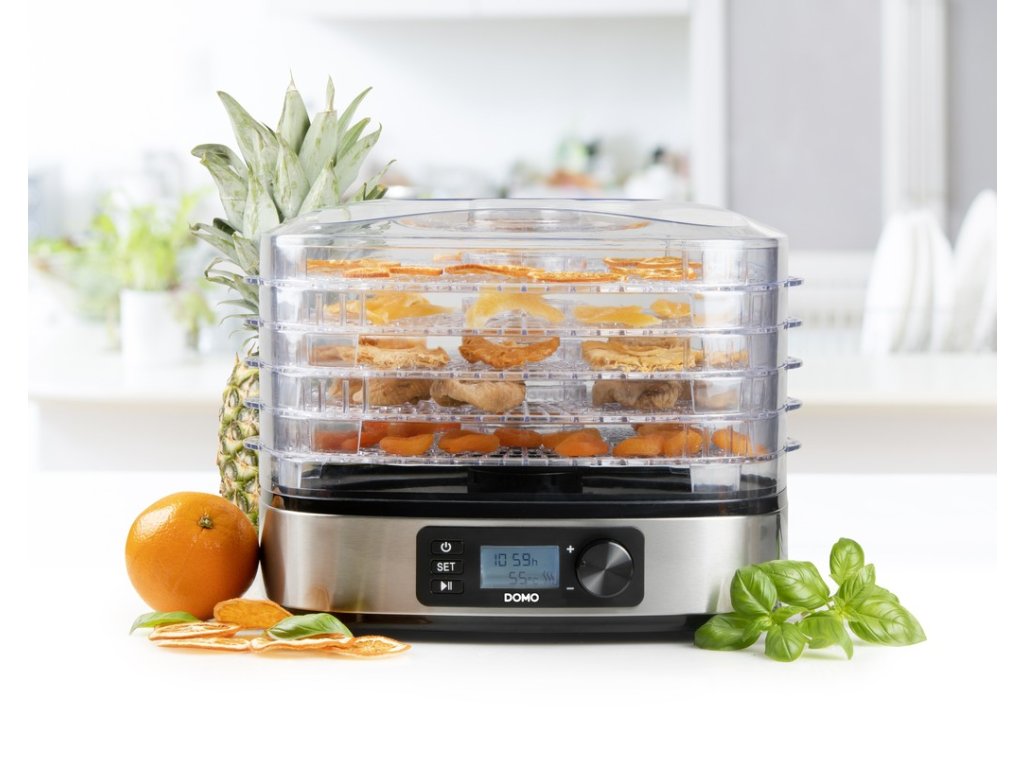 Kompaktní sušička ovoce s 5 sušícími patry vám usnadní přípravu sušeného ovoce z vaší zahrady, perfektně usuší i houby, nebo zeleninu z vaší zahrádky. Jednoduše nastavíte teplotu sušení a čas a sušička se o vše postará sama. Rovnoměrně zbaví vložené suroviny veškeré vlhkosti a umožní tak jejich dlouhodobé uchování.