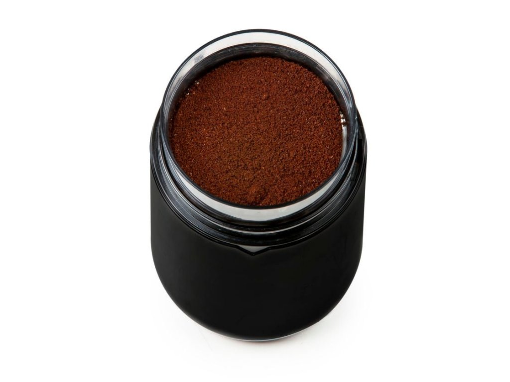 Průhledné víko usnadňující okamžitou kontrolu hrubosti namleté kávy