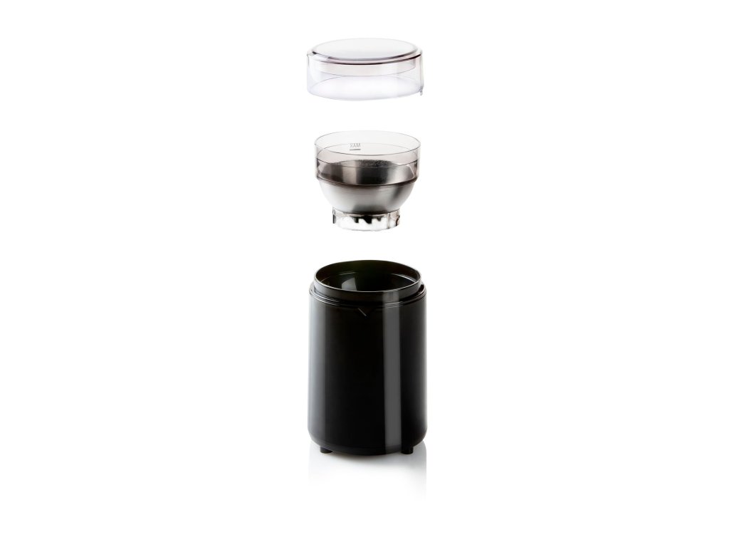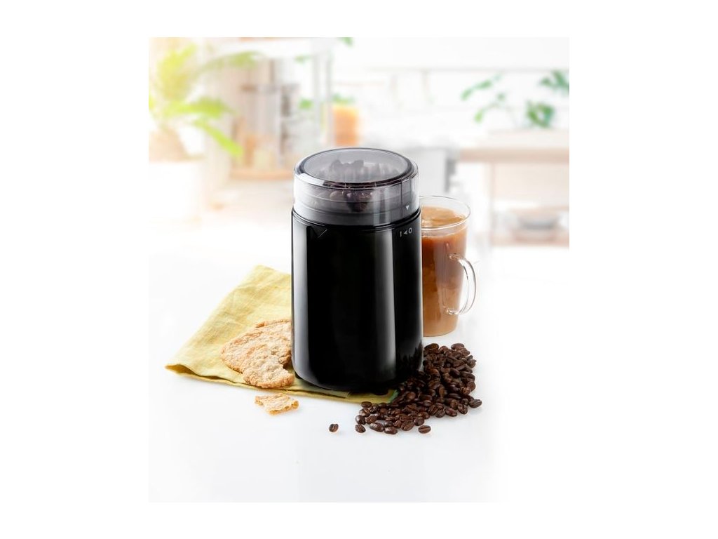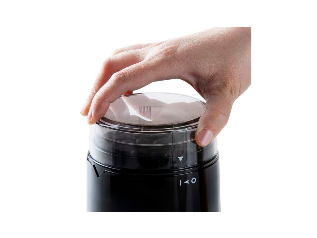 Elektrický mlýnek na kávu s vyjímatelnou nerezovou násypkou pro přípravu až 70 g kávy na jedno mletí. O mletí se stará ostrý nerezový nůž těsně kopírující dno a stěny nádoby tak, aby co nejprecizněji roztříštil kávová zrna. Vyjímatelnou násypku můžete snadno vysypat a i s nožem udržovat vždy čistou. Přístroj lze spustit pouze s nasazeným průhledným víkem díky čemuž se použití stává velmi bezpečné.