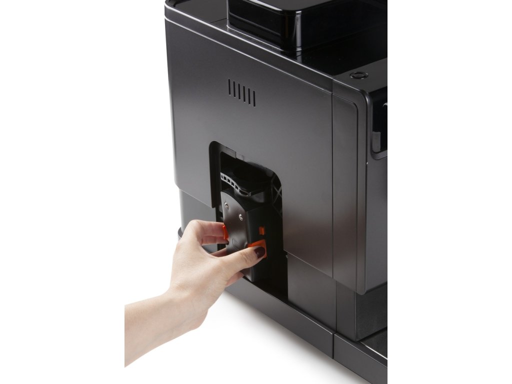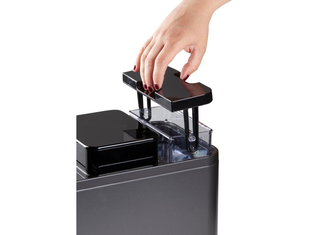 Perfektní aroma čerstvě namleté kávy zajišťuje integrovaný mlýnek na kávu s nastavitelnou hrubostí mletí a výškově nastavitelný zásobník na kávová zrnka s dobře těsnícím víkem. Protože čistota kávových trysek a vodních kanálků také patří k velmi důležité podmínce pro přípravu té nejlepší kávy, bude vás kávovar upozorňovat na nutnost odvápnění a sám se bude při zapnutí po delší nečinnosti proplachovat. Kávovar vás umí sám upozornit i na nutnost vysypat kávovou sedlinu, na nutnost dolití vody, nebo dosypání kávových zrnek. Jednoduše také můžete vyjmout celou spařovací jednotku a přiloženým kartáčkem ji očistit.
