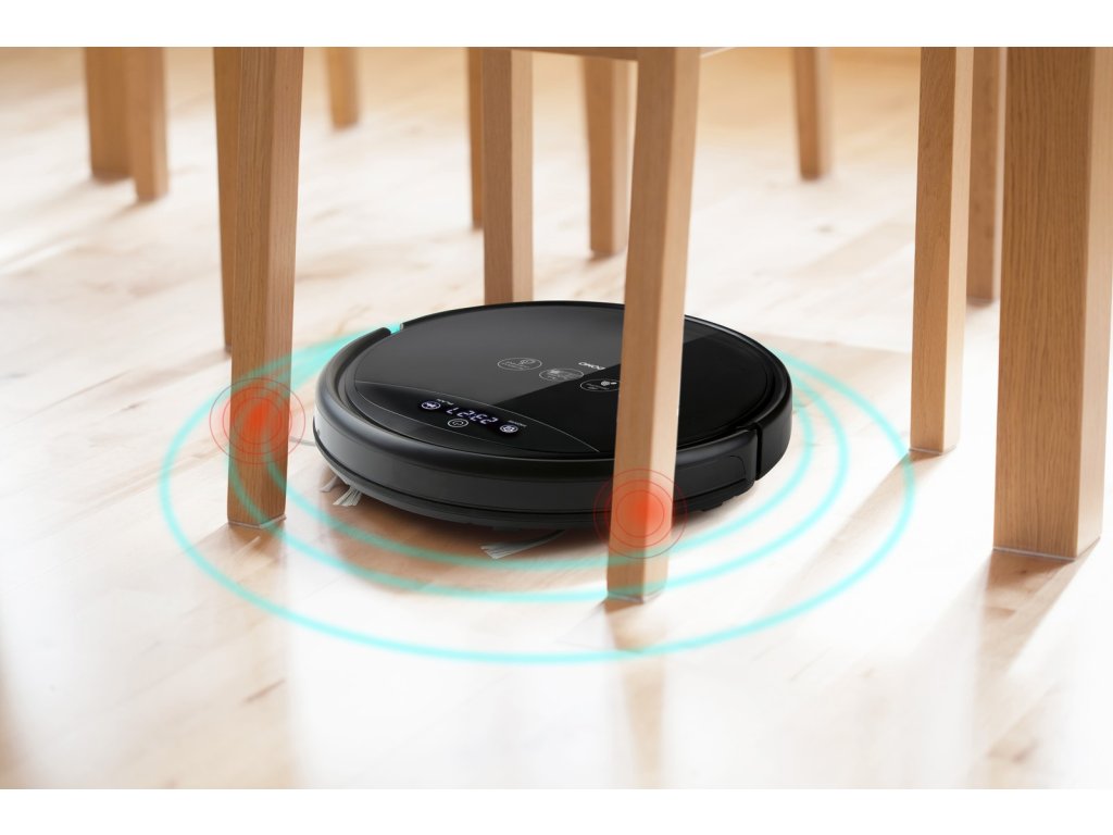 Díky rotačnímu kartáči a výkonnému sání všechny povrchy perfektně uklidí a vysaje. Boční kartáčky dosáhnou i do hůře přístupných míst v rozích a pod nábytkem a díky množství integrovaných senzorů a inteligentnímu řízení dráhy pohybu nikdy nespadne ze schodů a nevynechání žádné místo neuklizené.