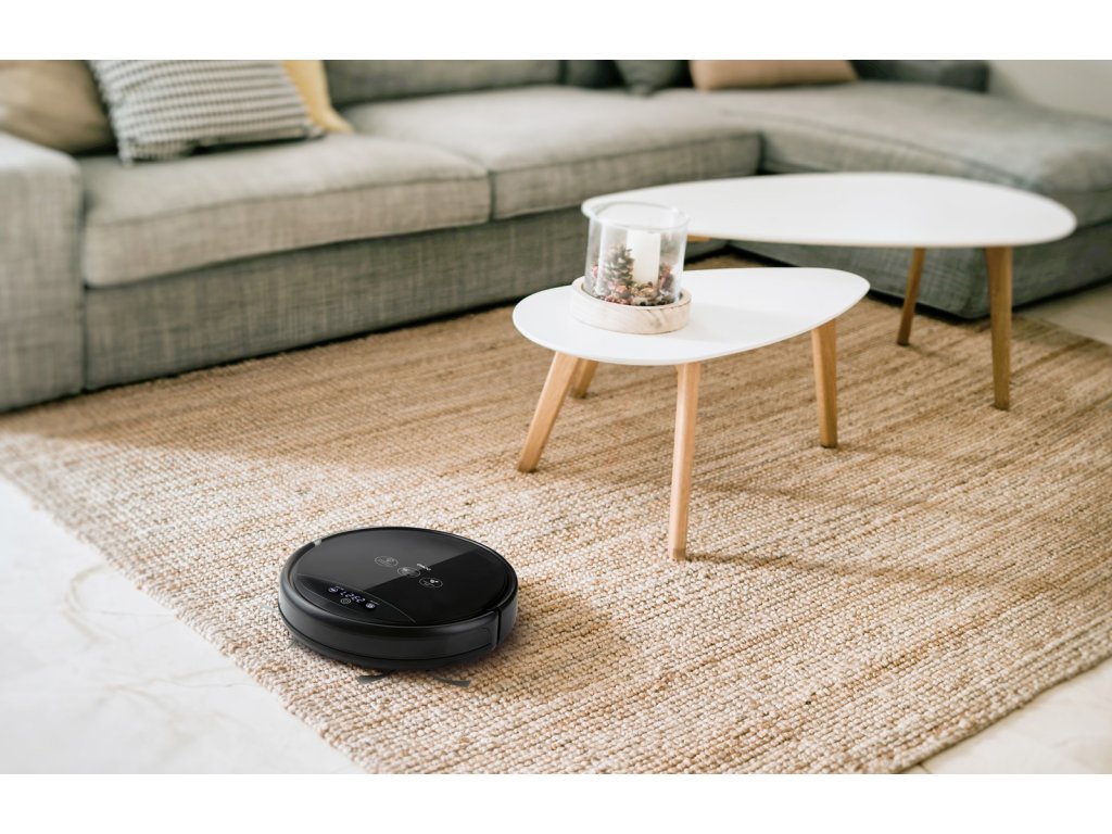 Robotický vysavač, podtlak 1,2 kPa, 48 senzorů, HEPA filtr, 550 ml nádoba, 120 min provoz, automatické dobíjení, dálkové ovládání, časovač, pro všechny typy podlah