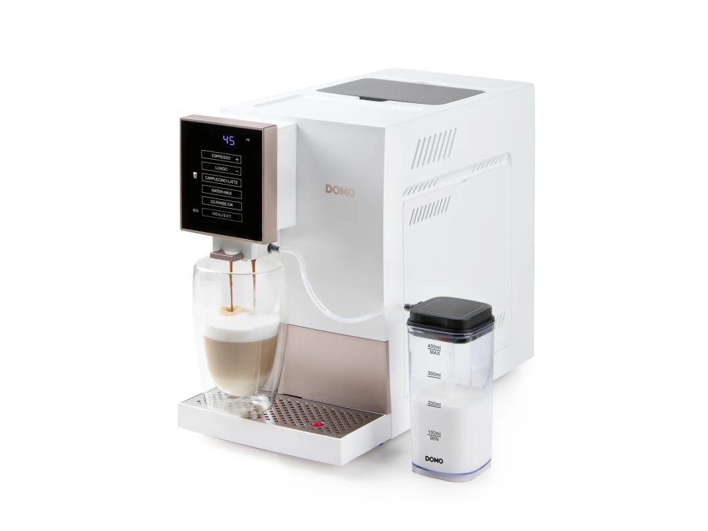 Kompaktní plně automatický espresso kávovar s integrovaným napěňovačem mléka a mlýnkem na kávu De luxe. LED displej a dotykové ovládání. Plně nastavitelný. Parní tlak 19 Barů.