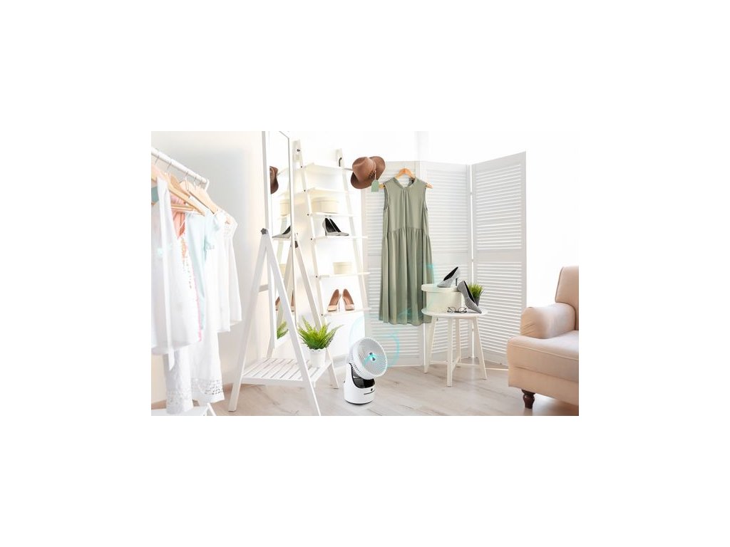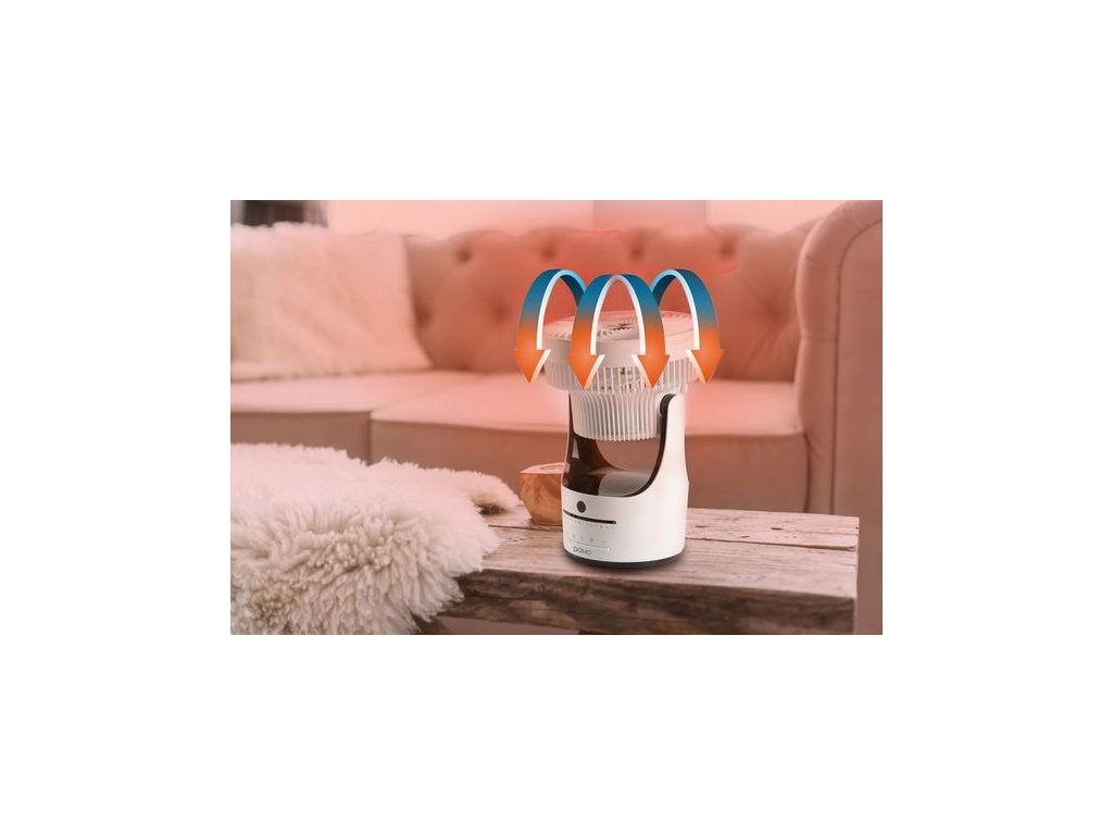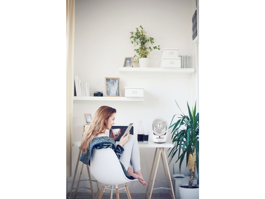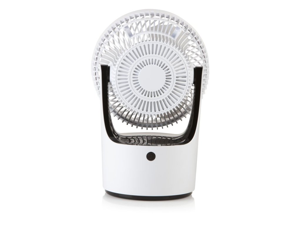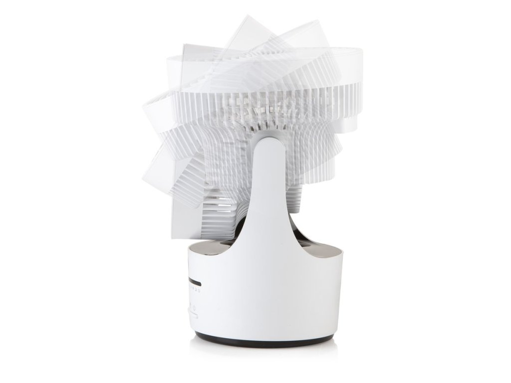 Stolní ventilátor s automatickou oscilací nastavitelnou od malého úhlu až po otáčení kompletně kolem své osy dokola. Díky integrovanému kabelu ve stojanu lze vrtuli ventilátoru nasměrovat i ve vertikálním směru a to až kolmo ke stropu. Foukáním kolmo nahoru lze docílit lepší cirkulaci vzduchu na vašem pracovním stole v horkých letních dnech i bez obtěžujícího průvanu. Kolmý směr foukání ventilátoru lze využít i v zimním období ke zrychlení cirkulace studeného a teplého vzduchu pro rychlejší ohřátí vzduchu v místnosti.