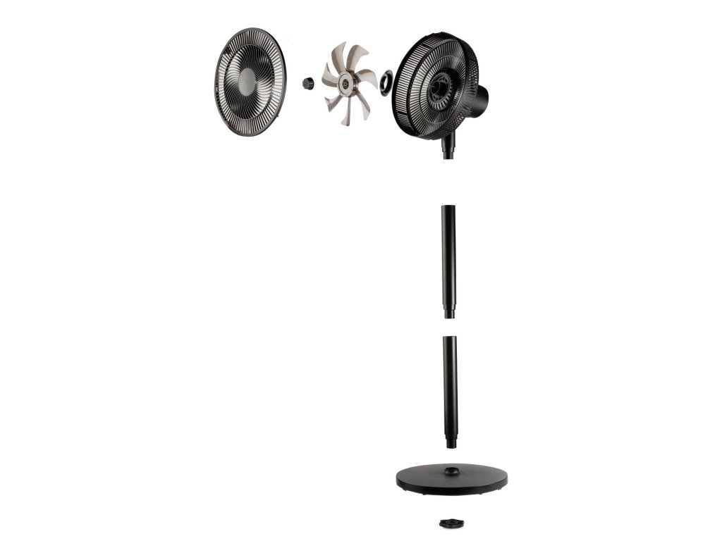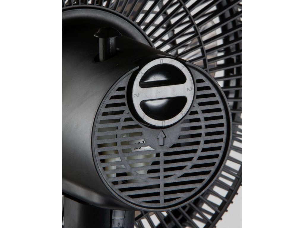 stolní i stojanový ventilátor (výška 63/91 cm), průměr vrtule 30 cm (7 listů), oscilace, 3 rychlosti, výkon 50 W, tichý chod, stabilní kruhová základna, délka kabelu 130 cm
