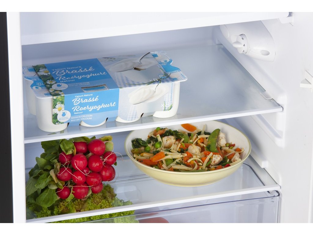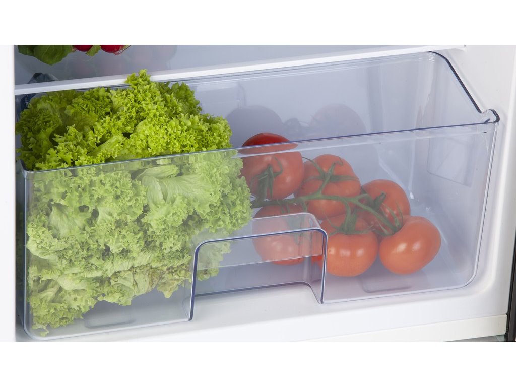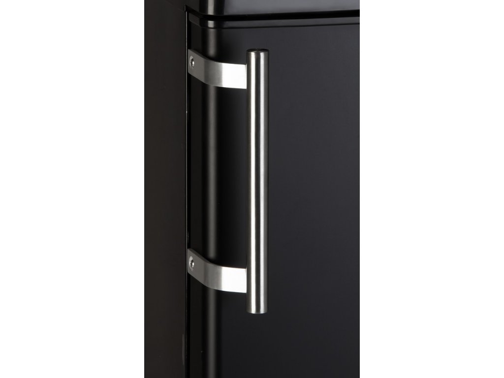 Úsporná a tichá lednice kombinovaná s vnitřním mrazákem. Praktická výška 84,5 cm umožňuje umístění i pod pracovní desku kuchyňské linky. Svojí matně černou barvou a efektní šachovnici na horním víku bude lednice působit elegantně kdekoliv ji postavíte. Speciální horní víko lze díky svému tvarování a speciálnímu odolnému povrchu využít i na odkládání nádobí, nebo jiných věcí.