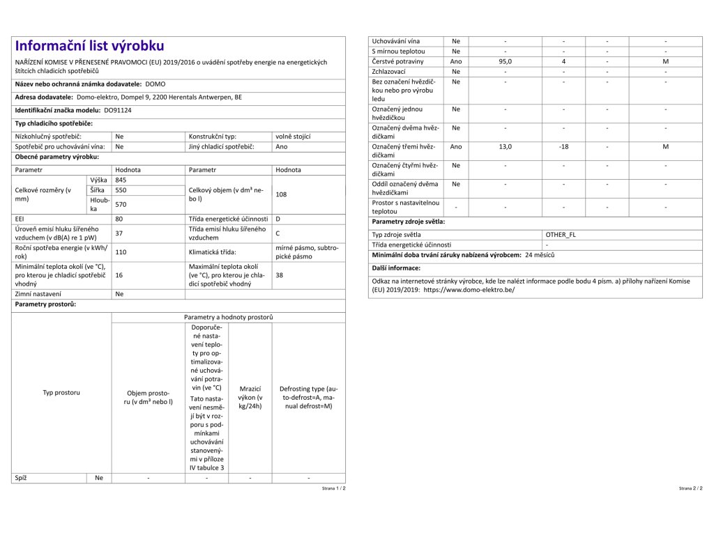 | Spotřeba el. energie [kWh/rok]: | 110 |