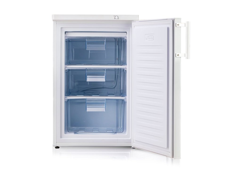 šuplíkový mrazák • celkový objem: 80 l • energetická třída: B • spotřeba energie: 83 kWh/rok • 3 průhledné vysouvací zásuvky