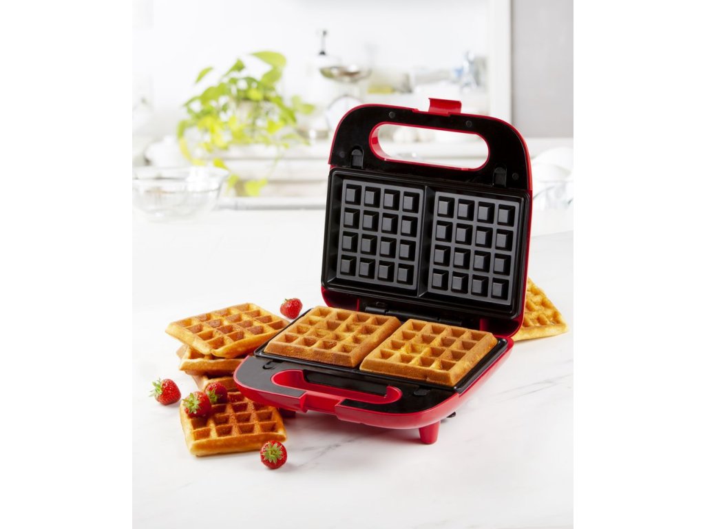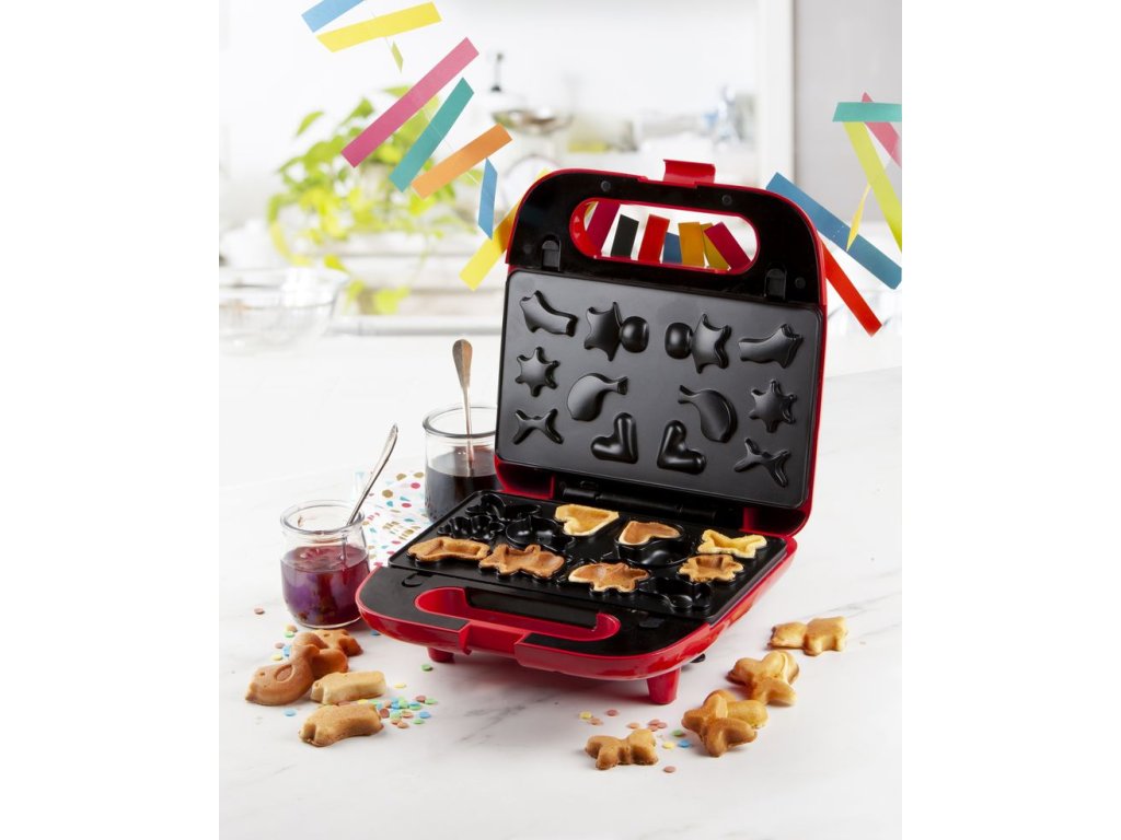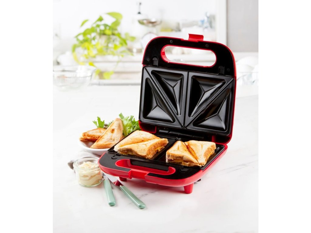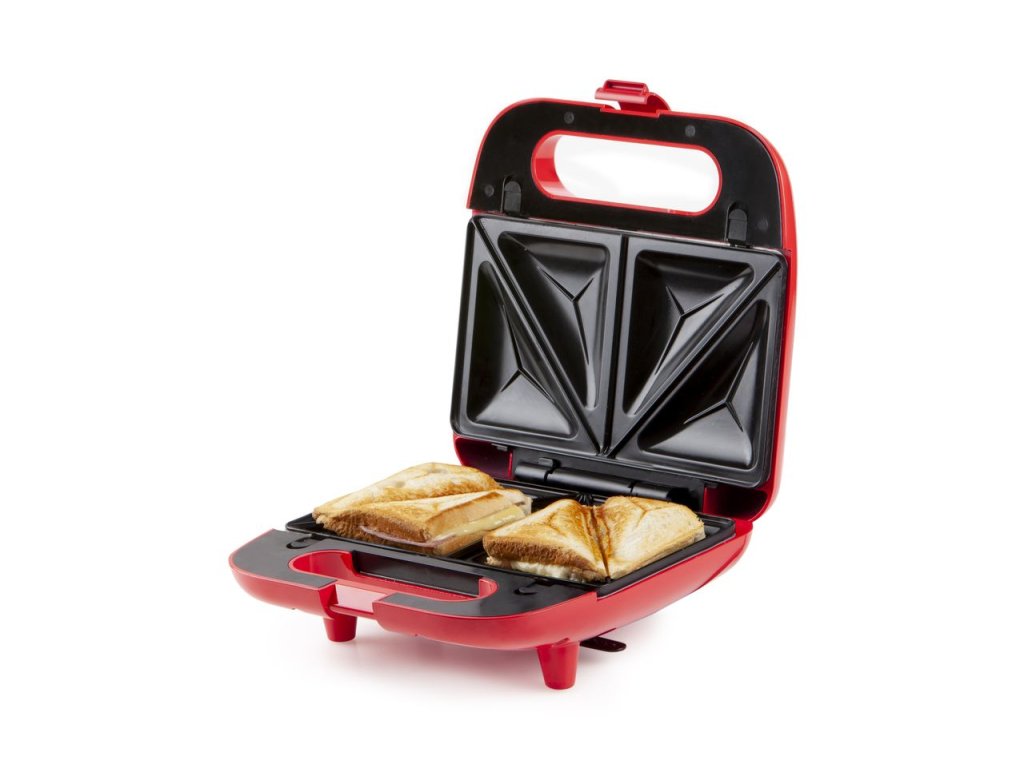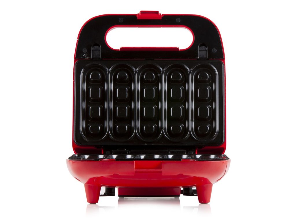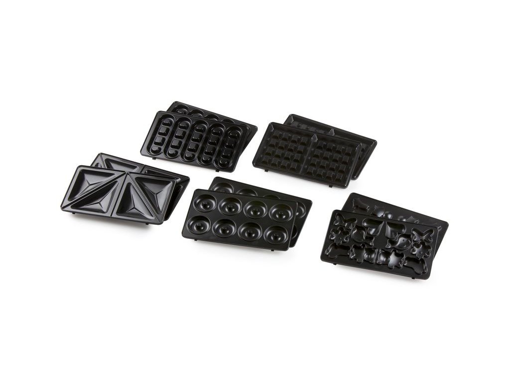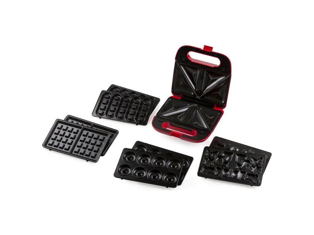 sendvičovač • příkon 750 W • 5 funkcí v 1 • nepřilnavý povrch • protiskluzové nožičky • zámek víka pro uložení ve svislé poloze • forma na 2 trojúhelníkové sendviče • forma na 2 vafle • forma na 5 vaflí na špejli • forma na 8 mini donutů • forma na 12 dět