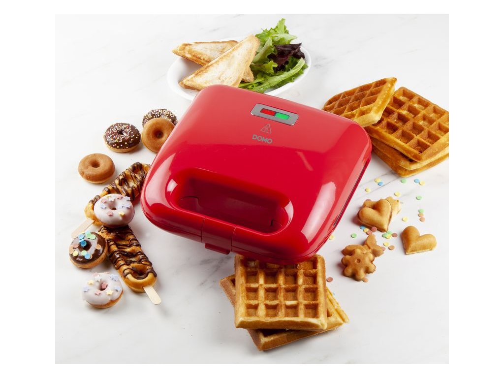 Sendvičovač Domo DO9242W nabízí hned pět různých forem pro přípravu sendvičů, vaflí, vaflí na špejli, mini donutů a dětských piškotů. Pečicí desky se pyšní nepřilnavým povrchem, lze je snadno vyjmout a lehce omýt pod vodou. Sendvičovač disponuje pojistkou proti spuštění bez vložených pečicích desek. Vaši bezpečnost při používání podpoří také protiskluzové nožičky. Nechybí ani zámek víka pro snadné uskladnění ve svislé poloze. Přívodní kabel je dlouhý 88 cm a sendvičovač má konzoli pro jeho pohodlné smotání.