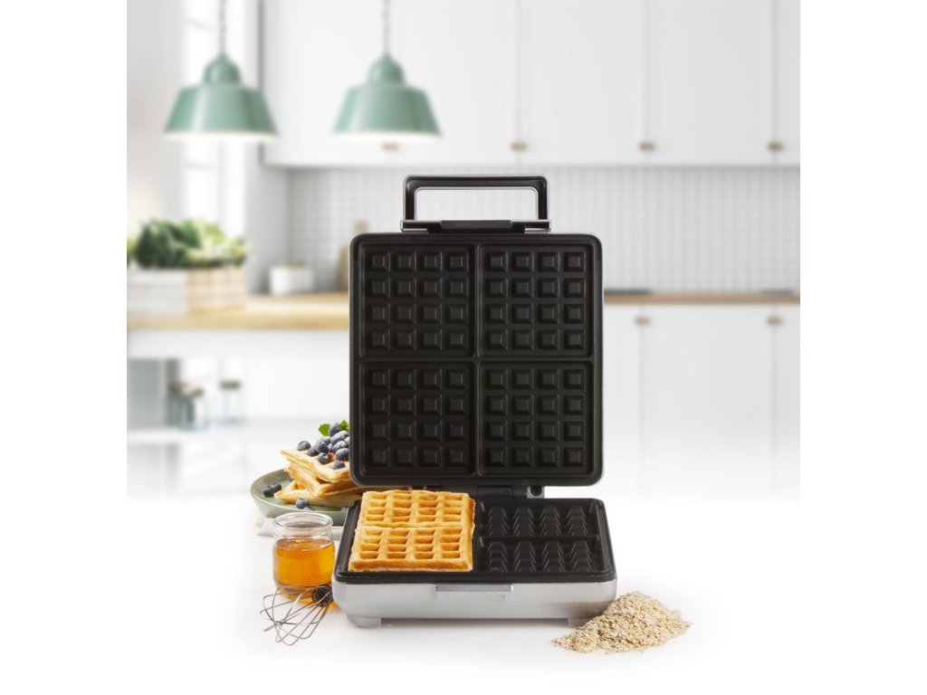 Vysoký výkon vaflovače zajišťuje rychlé propečení i na zvětšené ploše pro 4 čtvercové vafle a jejich křupavou kůrku.