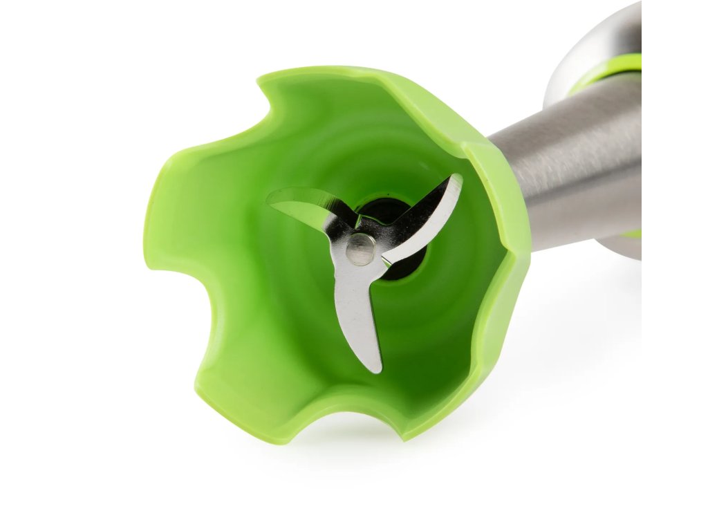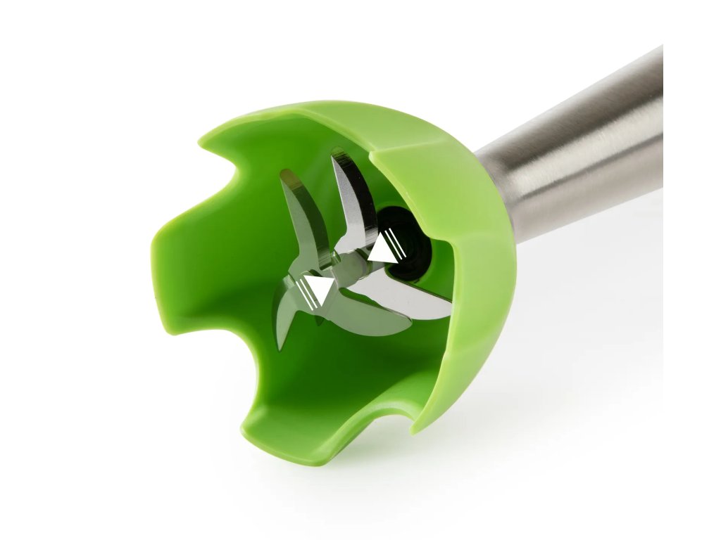 Výkonný tyčový mixér s plovoucím FLEXI ponorným nástavcem, díky kterému nůž dokáže mixovat v celém objemu přímo od dna. Gumové zakončení brání poškrábání nádobí. Nůž se 3 čepelemi.