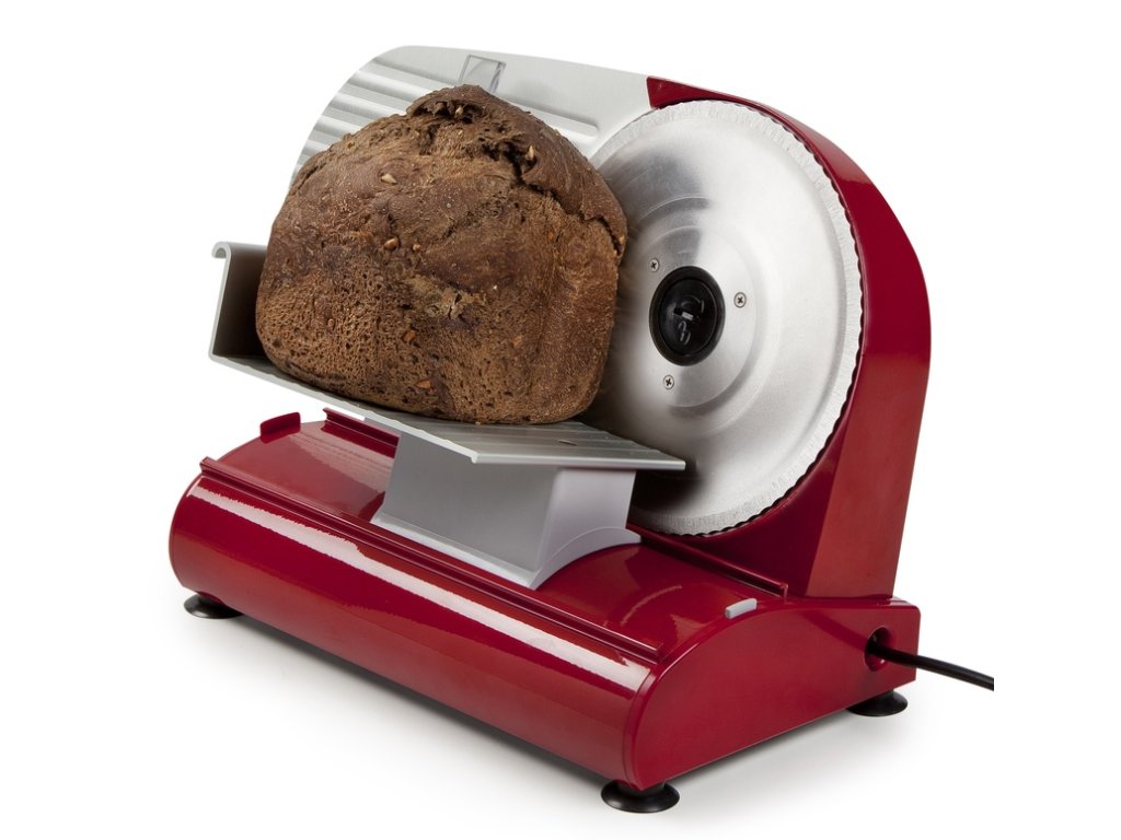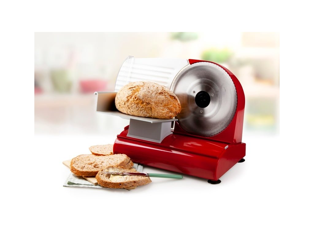 Elektrický kráječ potravin se díky svým kompaktním rozměrům a skládací desce snadno vejde do každé kuchyně a na každou pracovní desku. Na kráječi lze snadno na stejnoměrné plátky nakrájet i čerstvý chléb, tvrdší uzeniny, sýry i zeleninu (např. okurku).