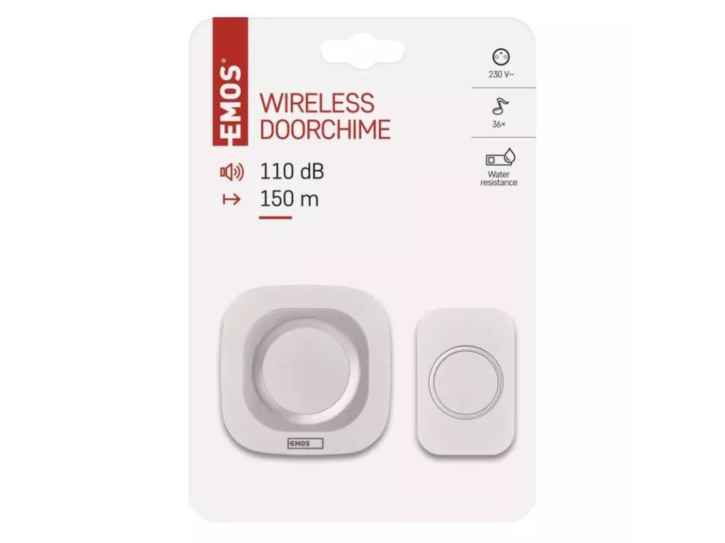 Bezdrátový zvonek ideální do domu, bytu nebo kanceláře s dosahem 150 m. Hlavní jednotka na 230 V AC a tlačítko s baterií CR2032. Upozorní vás jednou z 36 melodií a optickou signalizací. Možnost přidat až 8 dalších tlačítek. Regulace hlasitosti až do 110dB