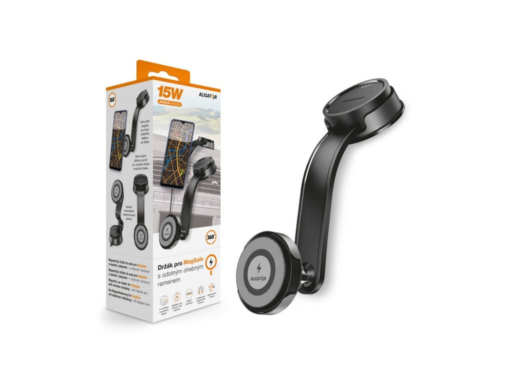 Držák do auta ALIGATOR pro MagSafe s odolným ohebným ramenem, na palubní desku
