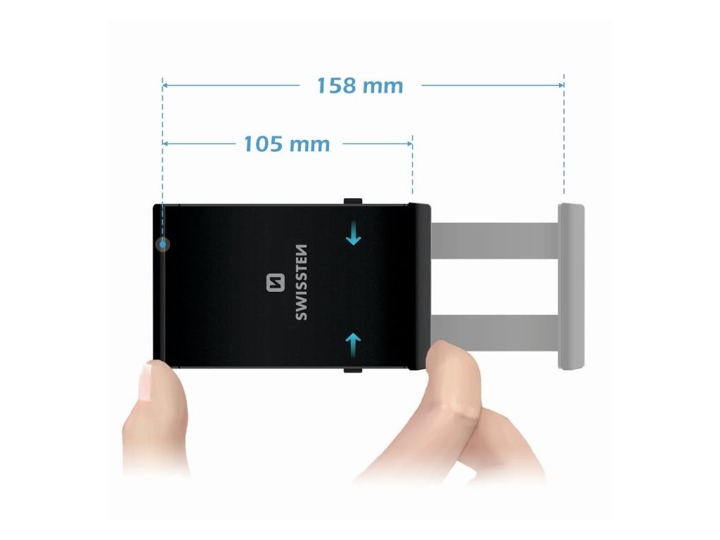 Držák do auta na tablet SWISSTEN S-GRIP T1-OP je určen pro instalaci na opěrku sedadla. Čelisti držáku mají rozpětí až 185mm.