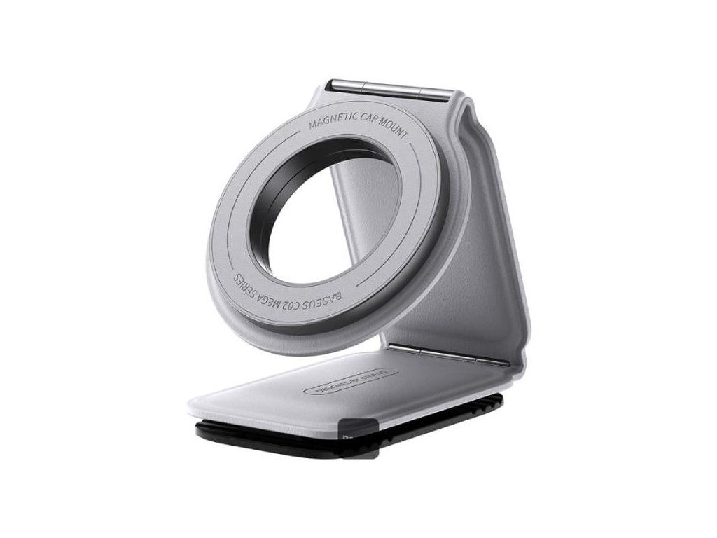 Držák do auta s magnetem Baseus C02 Prime Trip, uchycení na palubní desku,základna otočná o 360°, skládací konstrukce ve dvou osách, magnetické uchycení MagSafe, univerzální kompatibilita s dalšími magnetickými kroužky, provedení kov a kůže,magnetické vyv