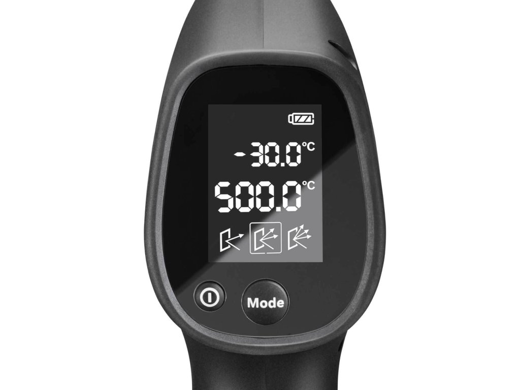 Měření povrchových teplot s UniversalTemp je snadné. Infračervená laserová technologie nabízí široký rozsah měření od -30 °C po +500 °C. Vyberte si ze tří měřicích režimů pro přesnější výsledky v závislosti na materiálu nebo přepínejte mezi jednorázovými a soustavnými režimy pro regulaci výsledků. Ergonomický design teploměru s obráceným segmentovaným displejem a podsvícením zlepšuje viditelnost a usnadňuje čtení výsledků. Během používání je pro rychlý přehled zobrazena aktuální a předchozí naměřená hodnota. Měřte teplotu v ledničce, mrazničce či v troubě nebo na kameni na pizzu a kontrolujte izolační funkci oken a odhalujte případné zdroje energetických ztrát.