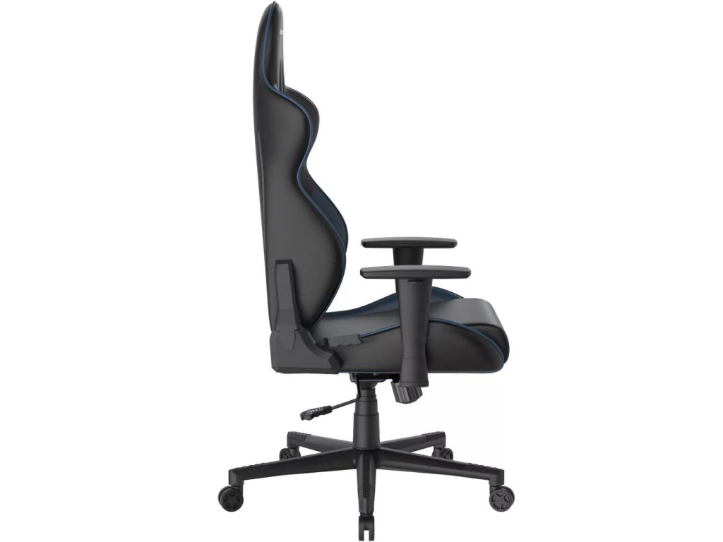 Herní židle, ergonomická, pro výšky 155–185 cm, nosnost do 130 kg, vnitřní ocelový rám, 3D područky, černo-modrá
