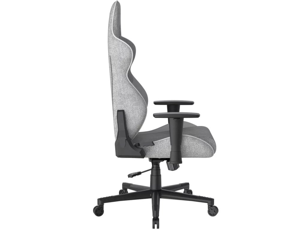 Herní židle, ergonomická, pro výšky 155–185 cm, nosnost do 130 kg, vnitřní ocelový rám, 3D područky, šedo-bílá (látková)