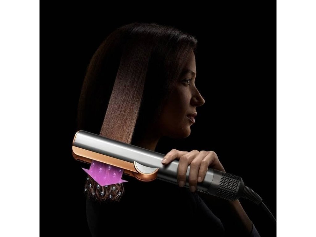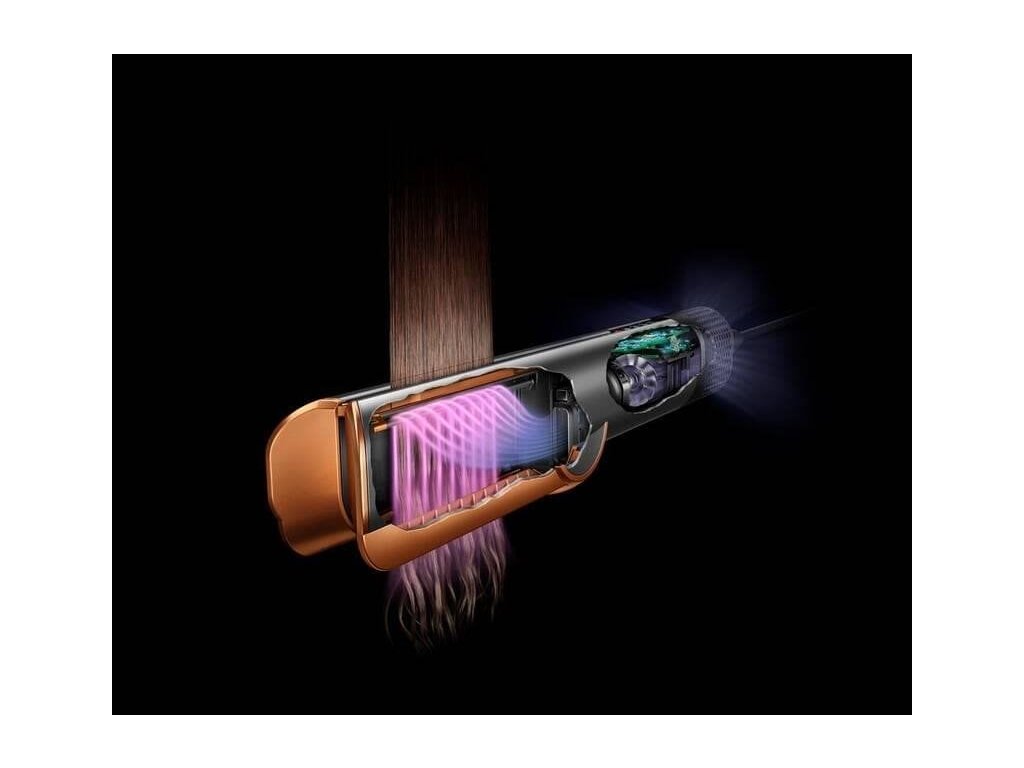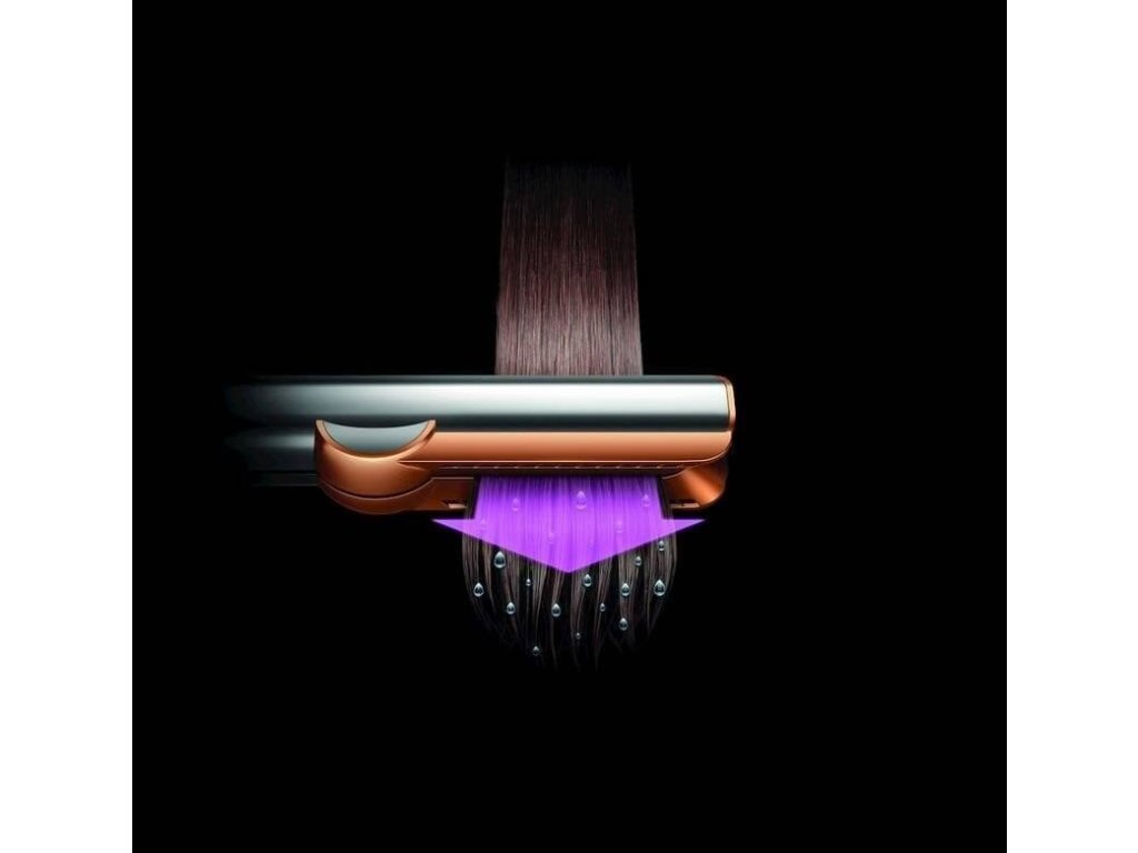 Vyzkoušejte inteligentní rovnání vlasů s Dyson Airstrait HT01. Žehlička má výkon 1 600 W a dosahuje maximální teploty 150 °C. Vzduch vaše vlasy šetrně narovná za sucha i mokra. Výkonný motor Hyperdymium™ vlasy rovná a suší bez extrémní změny teploty. Styling vašich vlasů bude rychlejší díky žehličce, která vlasy v jediném tahu suší a narovnává. Záporné ionty snižují výskyt statické elektřiny. Dopřejte si rovný účes s přirozeným objemem bez polétavých vlasů a krepatění. Vlasy zůstanou lesklé, pevné a dokonale chráněné. Barevný LCD displej zobrazuje aktuální teplotu a režim.