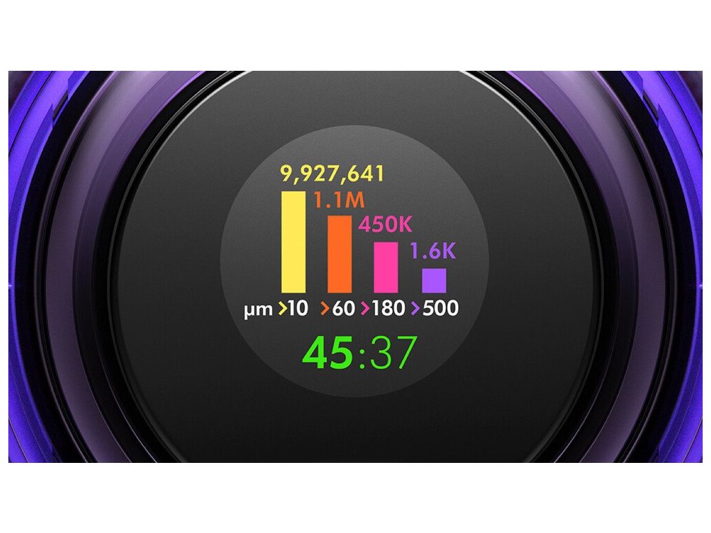 LCD displej ukazuje, co bylo vysáto, v reálném čase zobrazuje vědecký důkaz o důkladném úklidu.