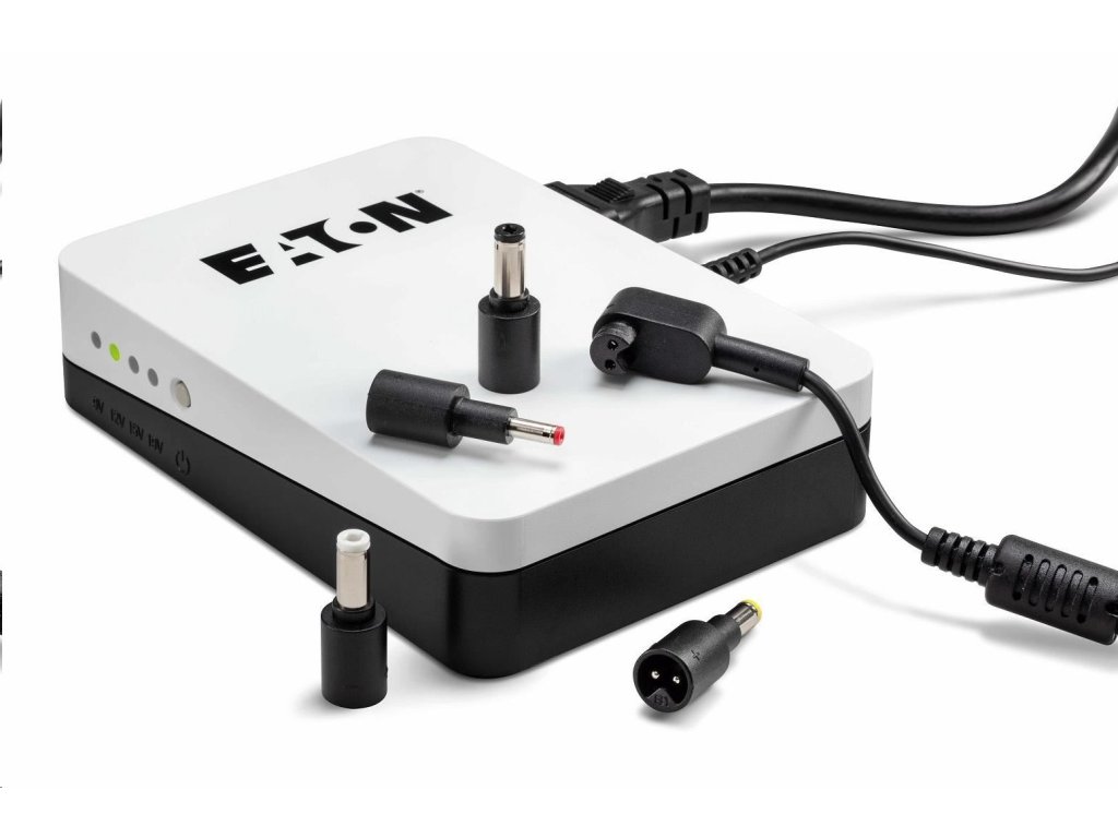 záložní zdroj, kapacita 36 W, přepěťová ochrana, výstupní napětí 9–19 V DC, 4 výměnné konektory DC, zajistí napájení při výpadku el. proudu