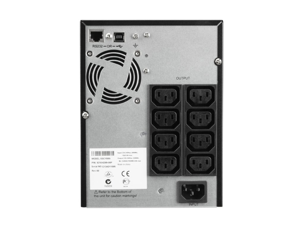 záložní zdroj, kapacita 750 VA (525 W), přepěťová ochrana, výstupní napětí 230 V, AVR, 6× zásuvka typ IEC C13, zajistí napájení při výpadku el. proudu, USB port, ochrana telefonní a internetové sítě