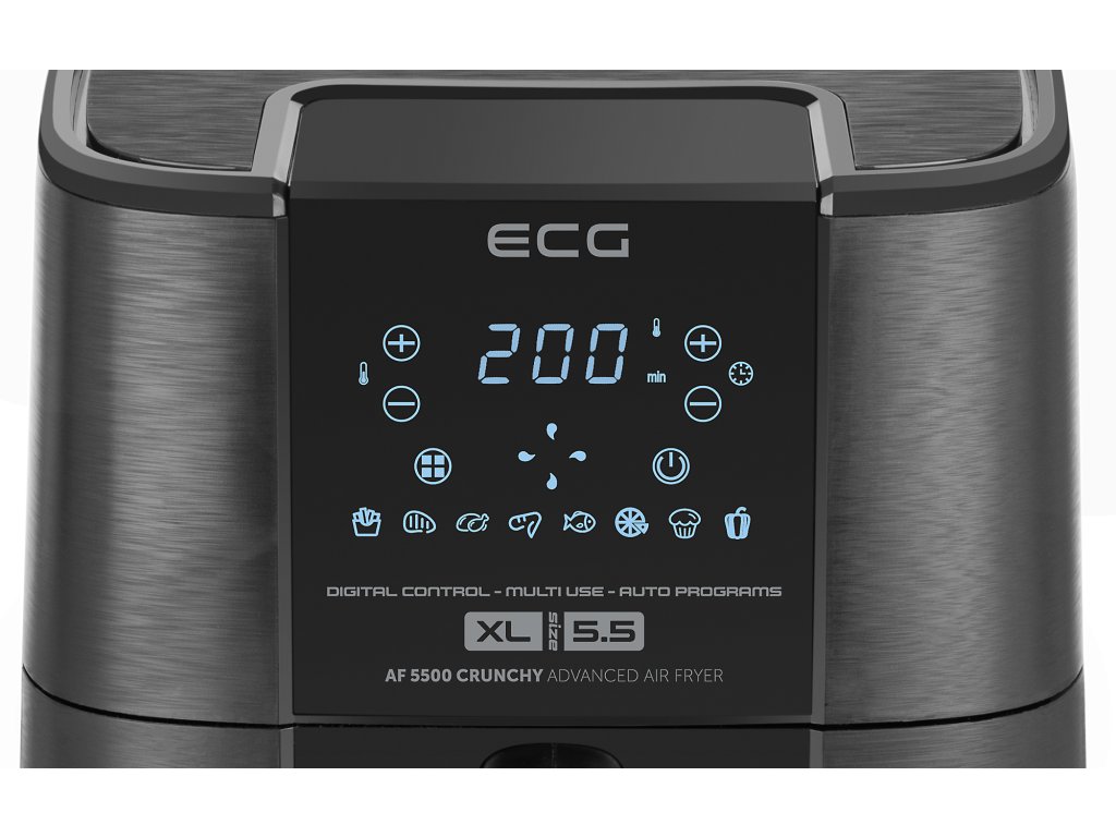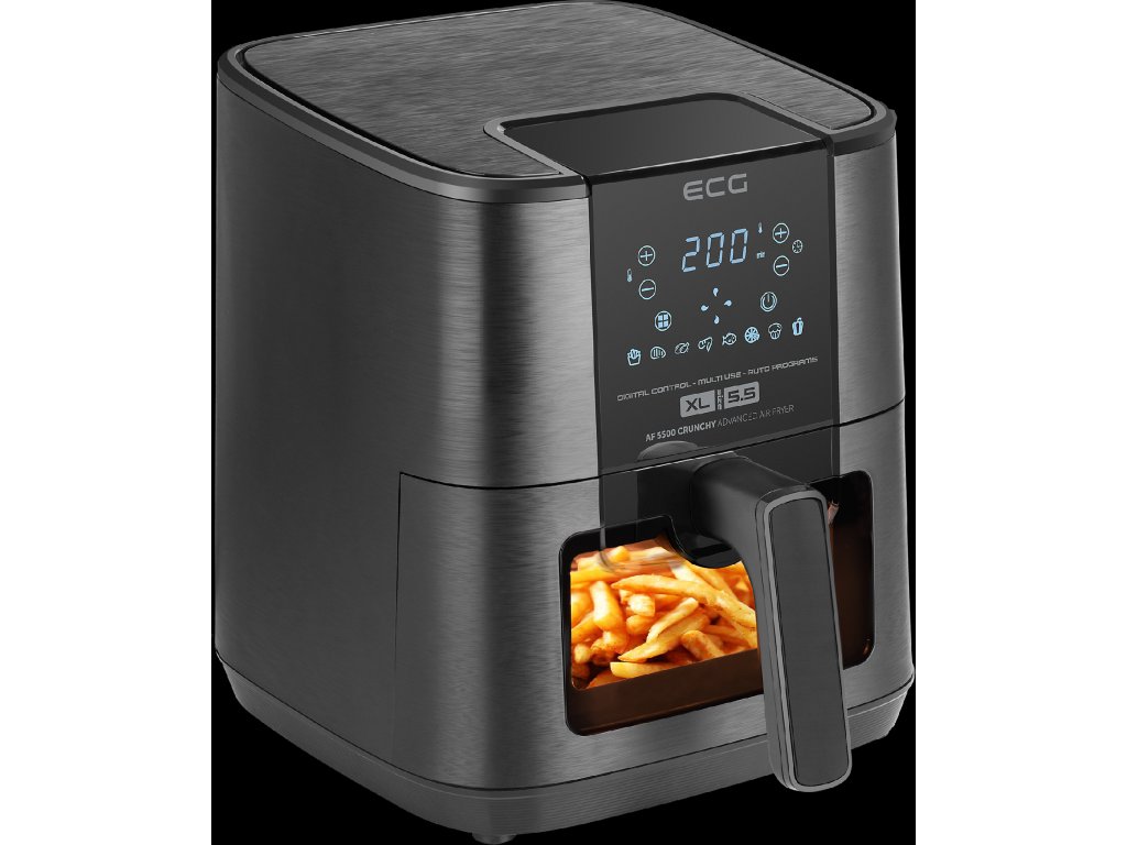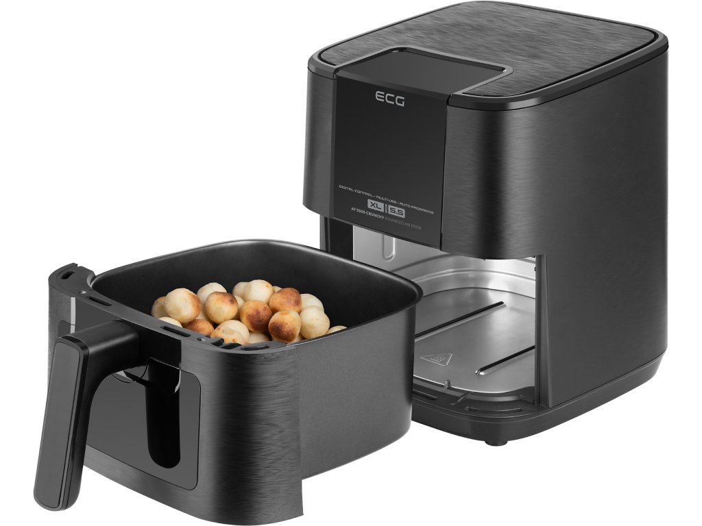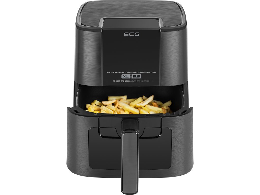 Milujete křupavé hranolky, krokety nebo třeba dokonale okořeněné kuřecí paličky, ale děsí vás, jak jsou všechna tato jídla nezdravá? V tom případě nám dovolte, abychom vám představili horkovzdušnou fritézu ECG AF 5500 Crunchy, s níž si všechny zmíněné pokrmy (a mnohé další) jednoduše připravíte v daleko zdravější podobě. Díky modernímu systému rychle cirkulujícího horkého vzduchu se totiž suroviny nebudou topit v tuku – v lahodné pochoutky je proměníte za použití několika málo kapek oleje, nebo dokonce úplně bez něj. Zásluhou technologie, kterou naše horkovzdušná fritéza využívá, je příprava vašich oblíbených jídel nejen zdravější, ale i rychlejší a v neposlední řadě také energeticky úsporná.