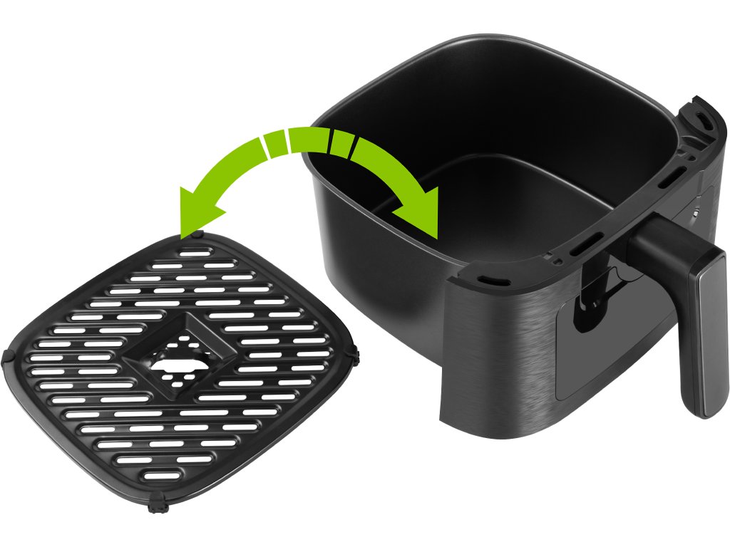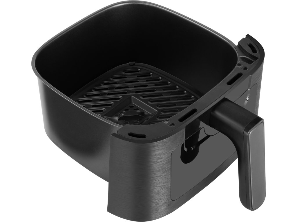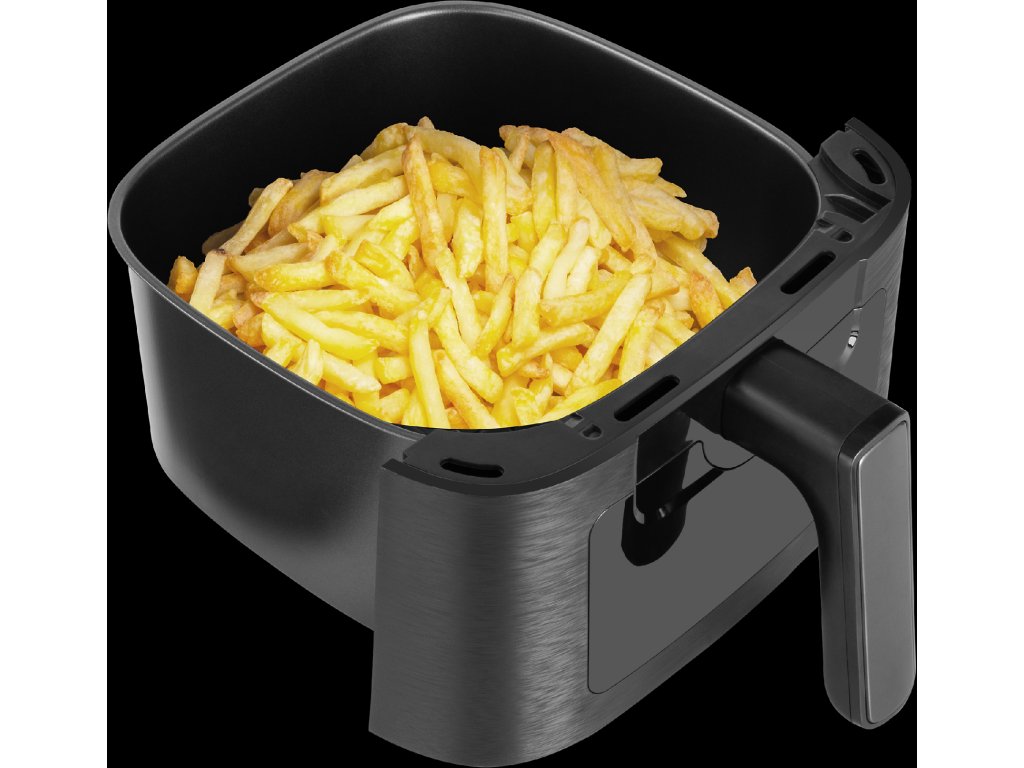 horkovzdušná fritéza • objem nádoby 5,5l • příkon 1350 W • ovládací LED panel • 8 přednastavených programů • průhledové okénko • tepelně izolovaný vnější plášť