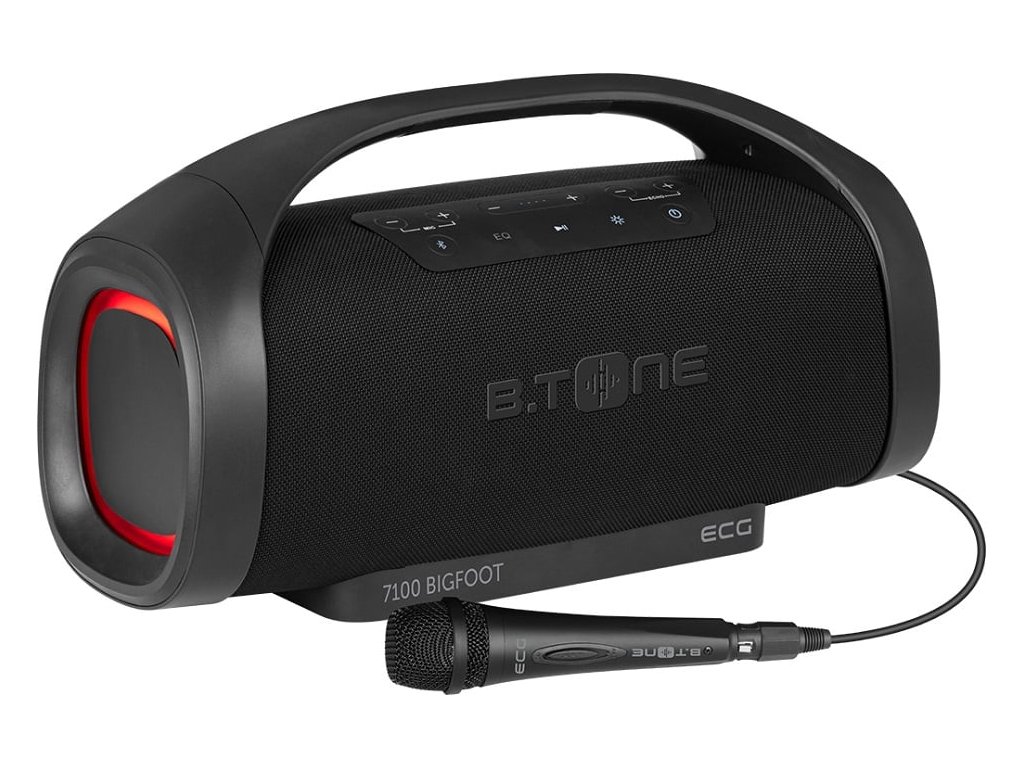 K výhodám bezdrátového reproduktoru ECG B.TONE 7100 BIGFOOT patří i možnost připojení mikrofonu, který je navíc rovnou součástí balení. Přístroj tak můžete využít nejen k poslechu muziky, ale i k uspořádání nezapomenutelného karaoke večírku nebo k efektivnímu moderování menších společenských akcí. Pokud chcete dát s přáteli na odiv svůj pěvecký talent, určitě oceníte i fakt, že se dají k tomuto reproduktoru připojit i dva mikrofony najednou (pomocí dvou 6,3mm jack konektorů).