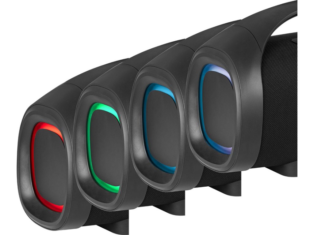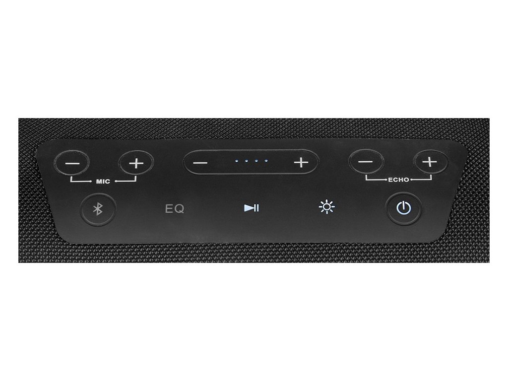 výkonný BT 5.0 reproduktor, výkon 60 W, IPX6 voděodolný, podpora dvou drátových mikrofonů, 1 mikrofon v balení, funkce powerbanky, LED efekty, ekvalizér, AUX a USB vstup, hlasový průvodce, 6 000 mAh baterie, ukazatel stavu baterie, provoz až 10 h při 60%