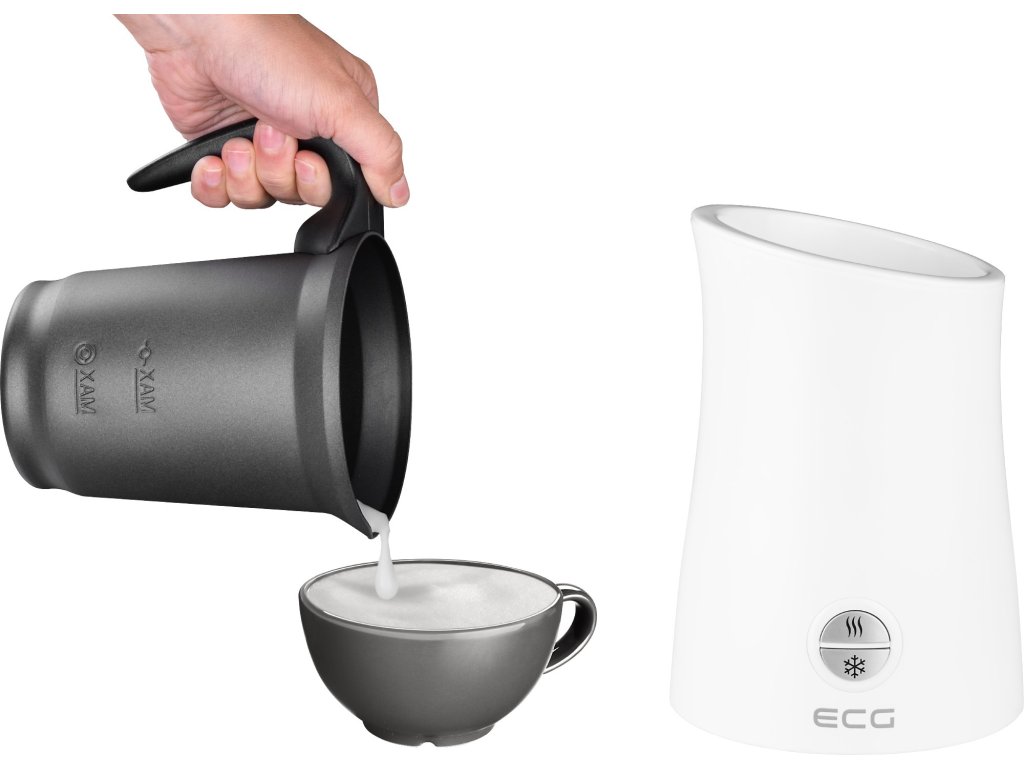 Kromě mléčné pěny do svého latte využijete napěňovač ECG také pro mlsné jazýčky svých dětí. S jeho pomocí můžete napěnit nejen horkou čokoládu, ale celou řadu dalších nápojů a to dokonce i těch studených. Doporučená maximální teplota mléka/pěny je 65 °C.