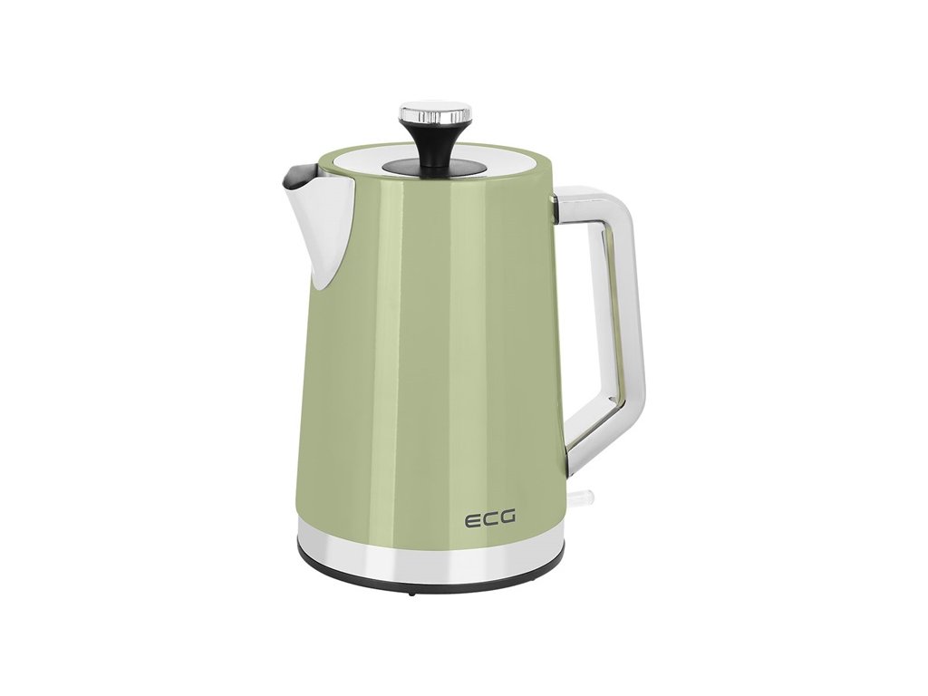 Rychlovarná konvice, příkon 1850-2200 W, objem 1,7 l, lakovaný kov v kombinaci s chromovými prvky, středový Strix konektor, 360° otočná základna s navíjením kabelu, vyjímatelný a omyvatelný filtr vodního kamene, automatické vypnutí, olivová barva