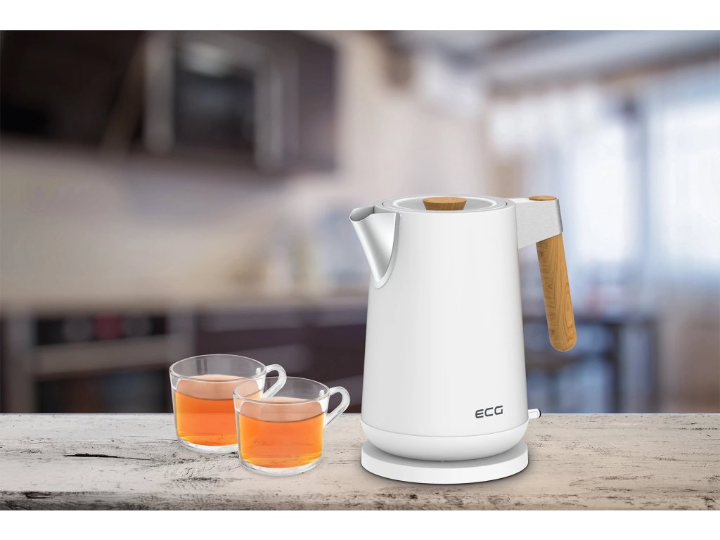 Pořiďte si rychlovarnou konvici ECG RK 1768 Strix Timber White a získáte nejen spolehlivého pomocníka pro každodenní přípravu čaje a kávy, ale i vkusnou ozdobu kuchyně. Tento malý spotřebič jsme totiž navrhli tak, aby vás zaujal hned na první pohled – opatřili jsme jej bílou povrchovou úpravou z nerezu a jeho atraktivní vzhled jsme ještě podtrhli stylovými dřevěnými prvky.