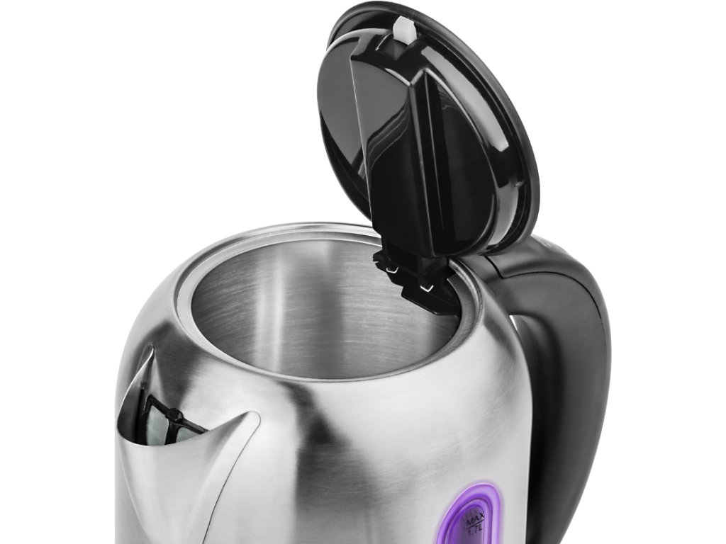 Rychlovarná konvice je vybavena 360° otočnou základnou s navíjením kabelu. Jistě oceníte také velký objem konvice, která pojme až 1,7 l vody a je tak vhodná pro přípravu i většího množství teplých nápojů.