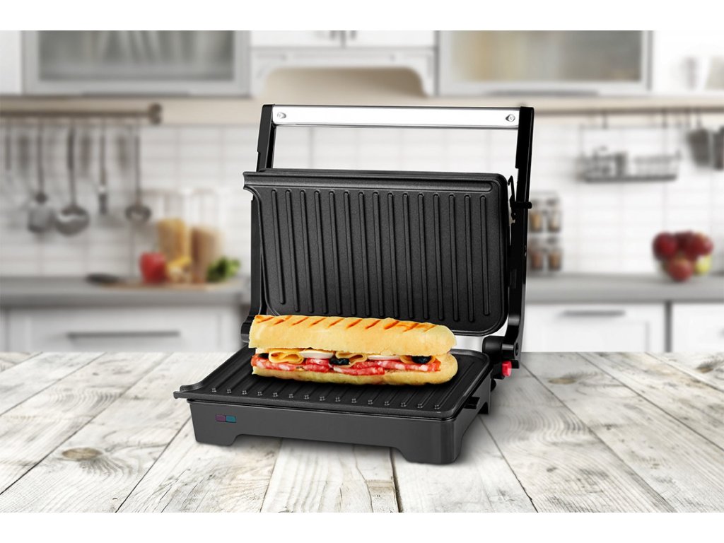Praktický kompaktní gril ECG S 2070 Panini se stane věrným pomocníkem ve vaší kuchyni. S tímto spotřebičem připravíte nejen panini a zapečené toasty, ale i maso, zeleninu nebo ryby.