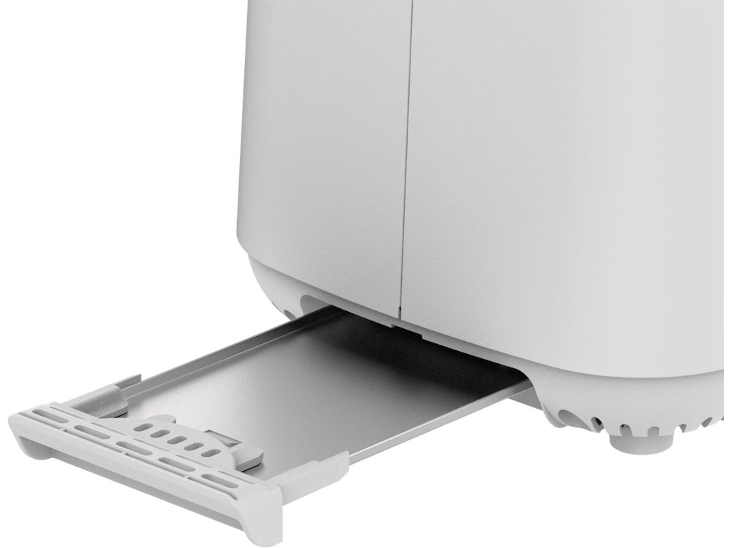 Topinkovač disponuje dvěma přihrádkami, které jsou dostatečně široké na to, abyste v nich mohli chystat tenčí i silnější toasty. Jeho údržba je hračkou zásluhou odnímatelné zásuvky na drobky.