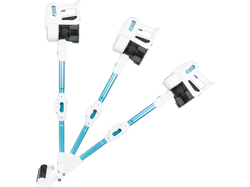 S tímto tyčovým bezsáčkovým vysavačem je úklid domácností úplnou hračkou. Jde totiž o akumulátorový spotřebič, který nepotřebuje žádný přívodní kabel – funguje na dobíjecí 2200mAh baterii, a tak za sebou při práci netaháte žádný drát. Na jedno nabití vám přitom spotřebič vydrží sloužit až 30 minut. (V případě potřeby ale můžete využít i klasické síťové napájení.)