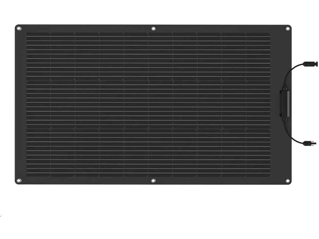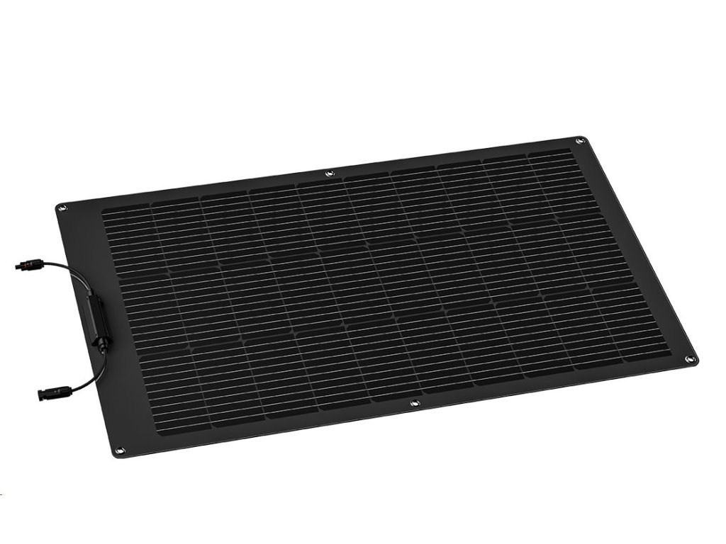 Flexibilní solární panel EcoFlow s výkonem 100 Wp. Panel je možné umístit i na zakřivené povrchy, nabízí vysokou účinnost 23% a ochranu proti vnějším vlivům. Samozřejmostí jsou prémiové solární konektory MC4.