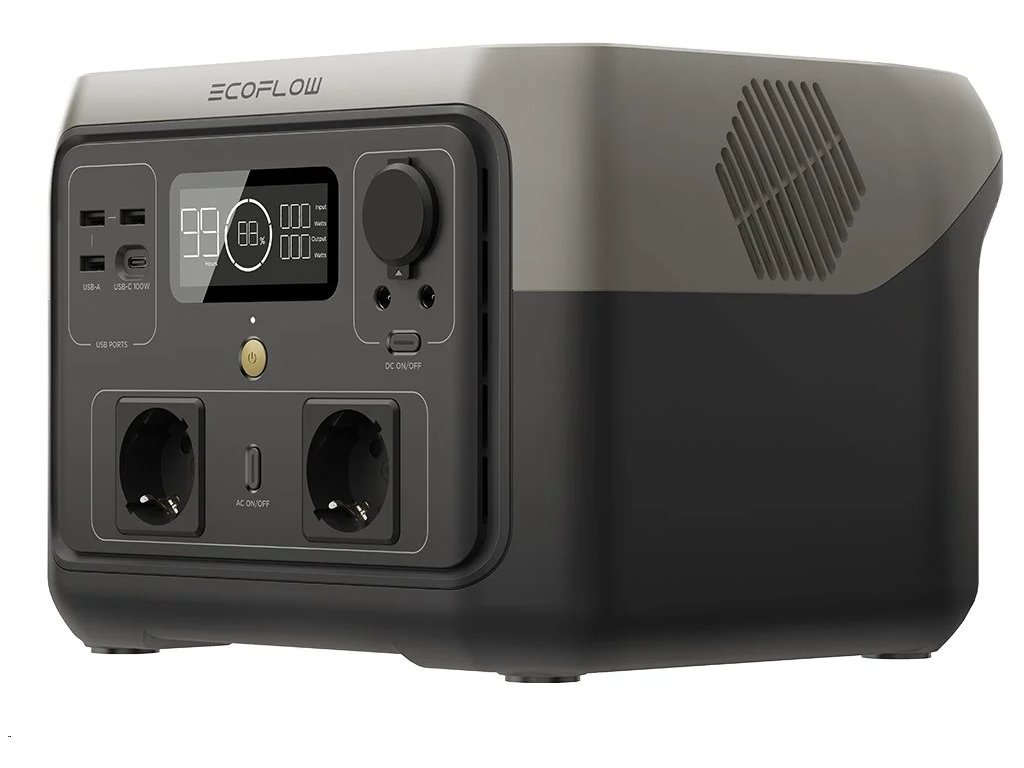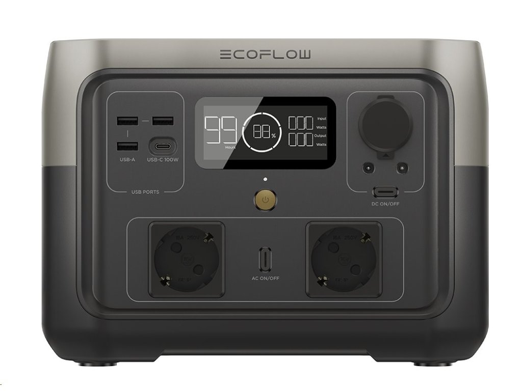 EcoFlow RIVER 2 Max je lehce přenosná bateriová stanice s hmotností 6 kg, kapacitou 512 Wh a stálým výkonem 500 W. Nabízí řadu portů pro všechna vaše zařízení včetně dvou AC zásuvek. Stanice se ze sítě dobije z 0 na 100% za 60 minut.