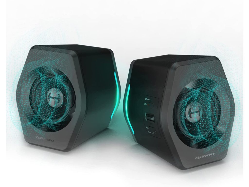 EDIFIER GAMING SPEAKERS G2000 black, aktivní reproduktory 2.0 o výkonu 16W, frekvenční rozsah od 98 Hz do 20000 Hz, 2-pásmové, vstup na USB zvukovou kartu, RGB efekty, zvukové režimy: Hudba, Hra a Film, výstupní rozhraní k subwooferu