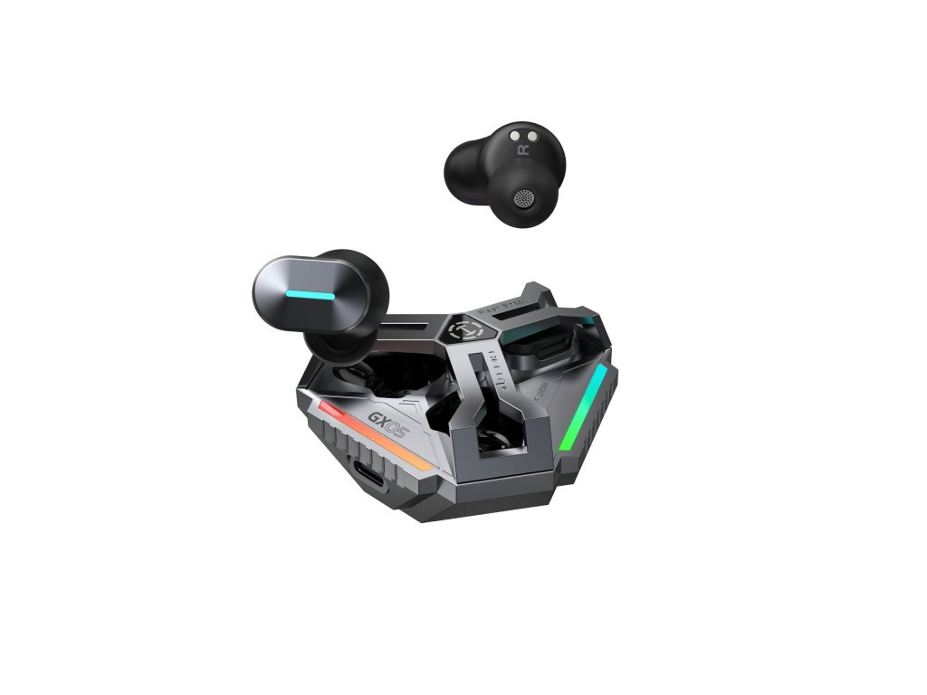 Herní sluchátka GX05, šedá, s ultra nízkou latencí, s Bluetooth 5.3 a frekvenční odezvou od 20 Hz do 40 kHz