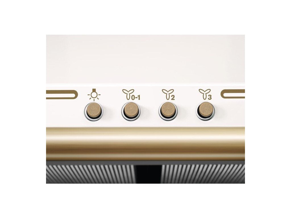 Komínová digestoř, barva krémová, energetická třída D, max. výkon odsávání 420 m3/h, hlučnost 66 dB, 3 stupně výkonu, tukový filtr, led osvětlení, šířka 60 cm.