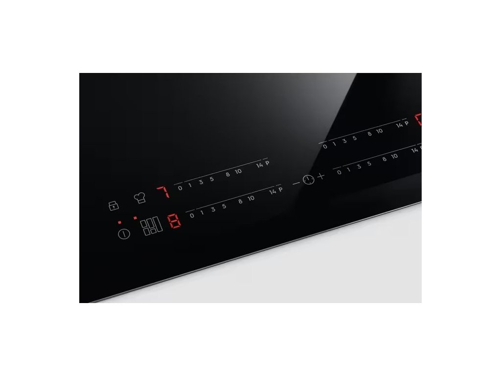 Indukční vestavná varná deska 78 cm, 4 varné zóny, připojení 400 V, zkosené hrany, dotykové ovládání, funkce FlexiBridge – vznikne velká varná plocha zkombinováním dvou zón, funkce PowerBoost.