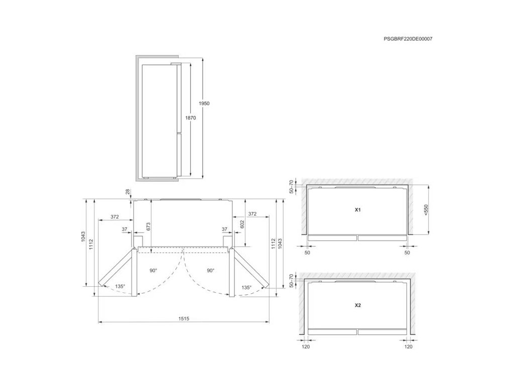Rozměry spotřebiče VxŠxH (mm): 1900 x 909 x 690