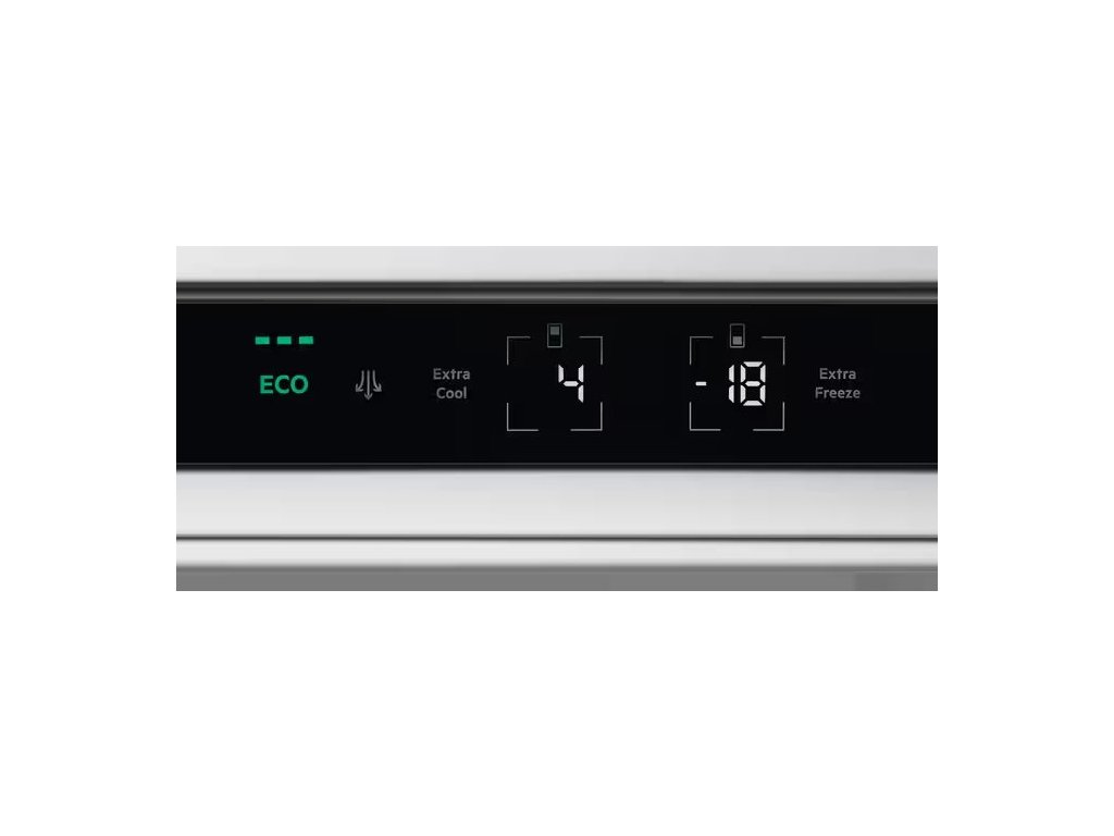 Vestavná kombinovaná lednička s mrazákem dole, objem 287l/89 l, barva bílá, energetická třída E, technologie TwinTech No Frost a DynamicAir, roční spotřeba energie: 247kWh, maximální hlučnost: 35 dB, šířka: 71 cm, výška: 189,4 cm.