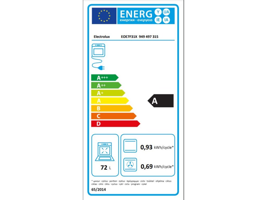 Vestavná elektrická trouba, objem 72 l, barva nerezová ocel, energetická třída A, katalytické čištění, max. příkon (W): 3490, šířka 56 cm.