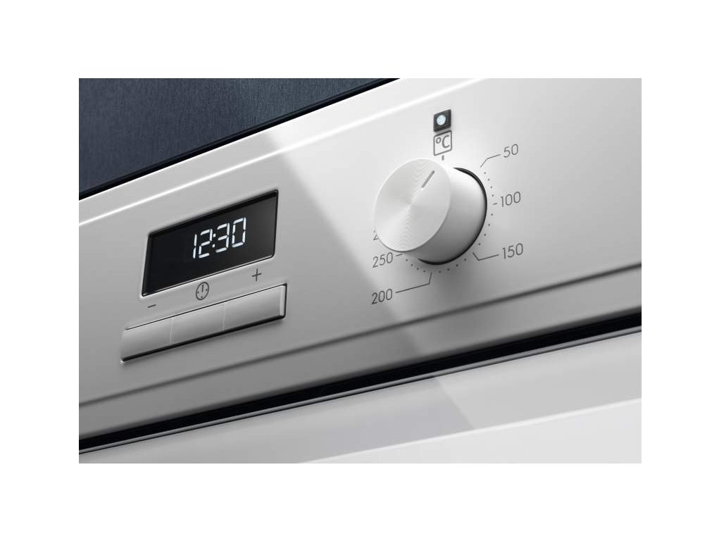 Vestavná trouba vás zaujme i svým jednoduchým ovládáním. Vybavená je ovládáním prostřednictvím zásuvných ovládacích knoflíků s LED displejem a umožňuje nastavení trvání procesu pečení. Můžete si na něm na něm nastavit i začátek a ukončení přípravy jídla. Díky jeho zápustným ovladačem a tlačítkům získáte snadný přístup ke všem nastavením trouby.