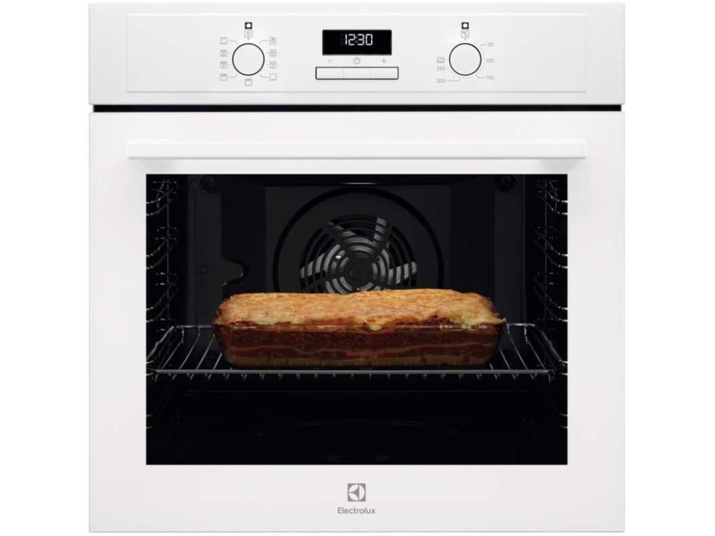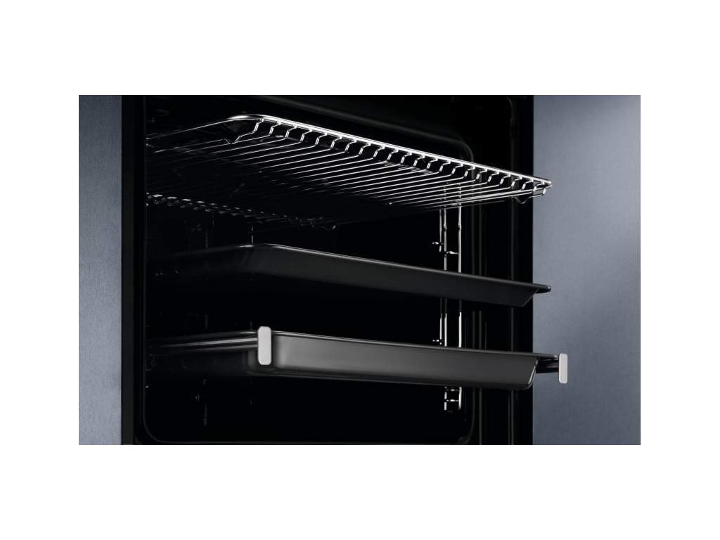 Vestavná trouba Electrolux SurroundCook EOF3H70V s kruhovým topným tělesem zajišťuje rovnoměrnou vnitřní teplotu díky rozvádění vzduchu a tepla pomocí ventilátoru. Zvládne připravit vše od křupavého pečeného kuřete po chutné sněhové pusinky upečené rovnoměrně. Nabízí možnost péct rovnoměrně na třech úrovních. Její kapacita je 72 litrů pro přípravu jídel. Ovládací panel se zasunovacími prvky vám poskytne přístup upravit nastavení podle vaší chuti. Nové boční mřížky Easy Entry umožňují snadnější zasouvání plechů do trouby. Jsou odnímatelné, díky čemuž je lze snadno očistit. VelvetClosing jemně zavře dvířka trouby.